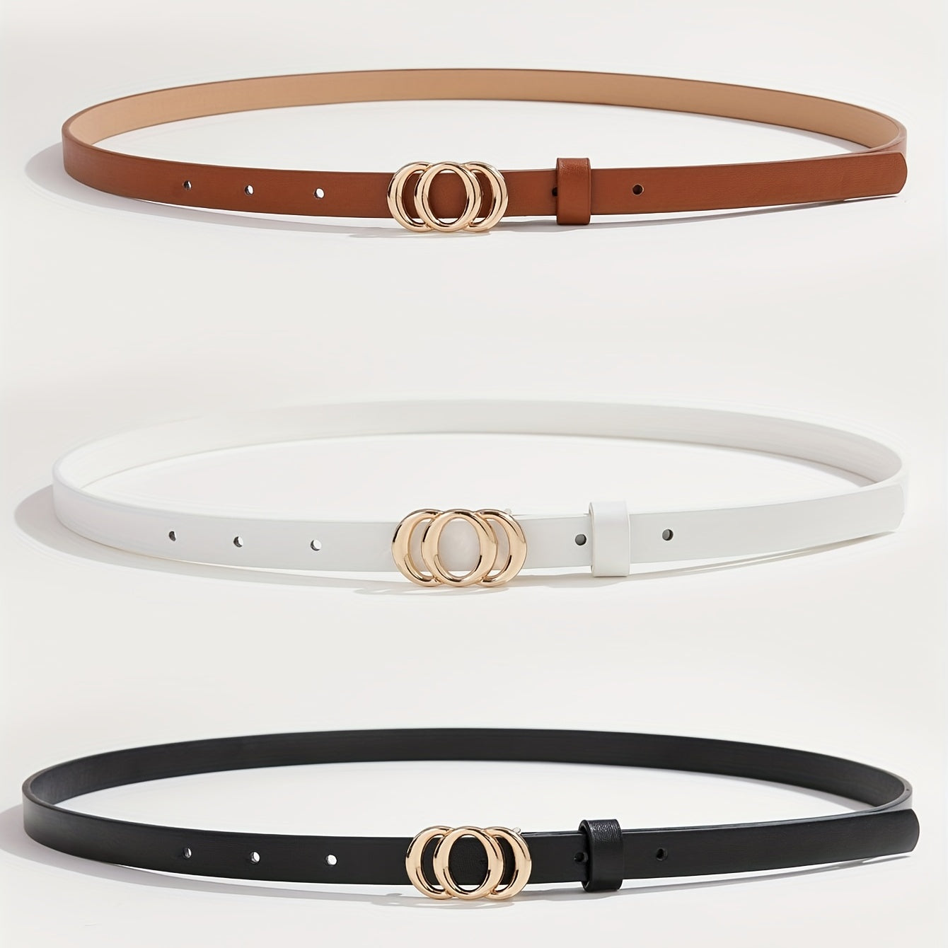 Dieses 3-teilige Set enthält O-Schnalle-Gürtel aus festem PU-Material. Diese Taillengürtel eignen sich perfekt für Gelegenheitsjeans oder Hosen und haben ein klassisches GRAND -Design.