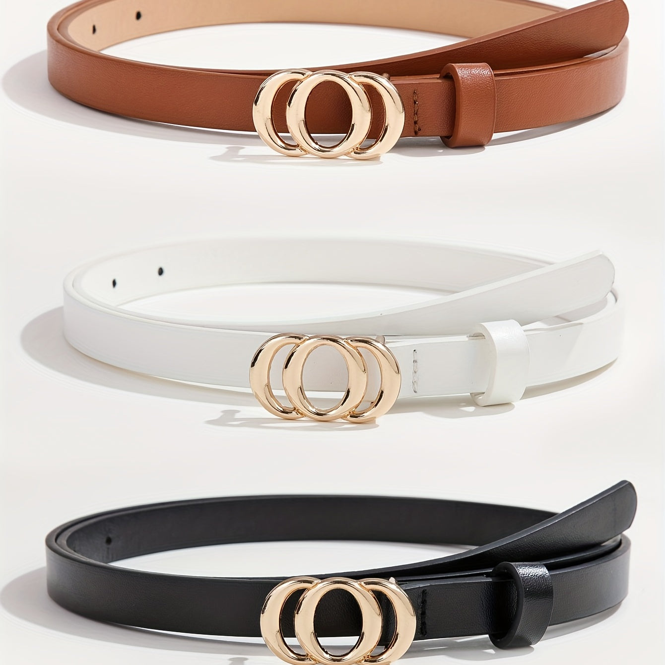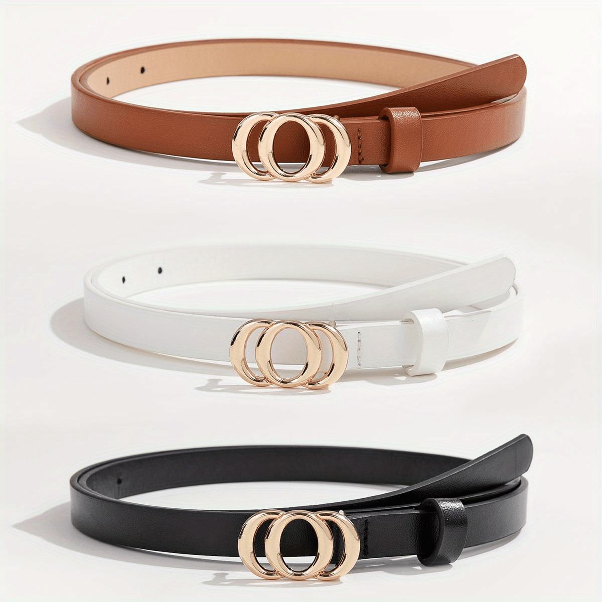 3pcs Set O Buckle Belt Solid PU Belt Casual Jeans Pants Waist Belts Classic Gird