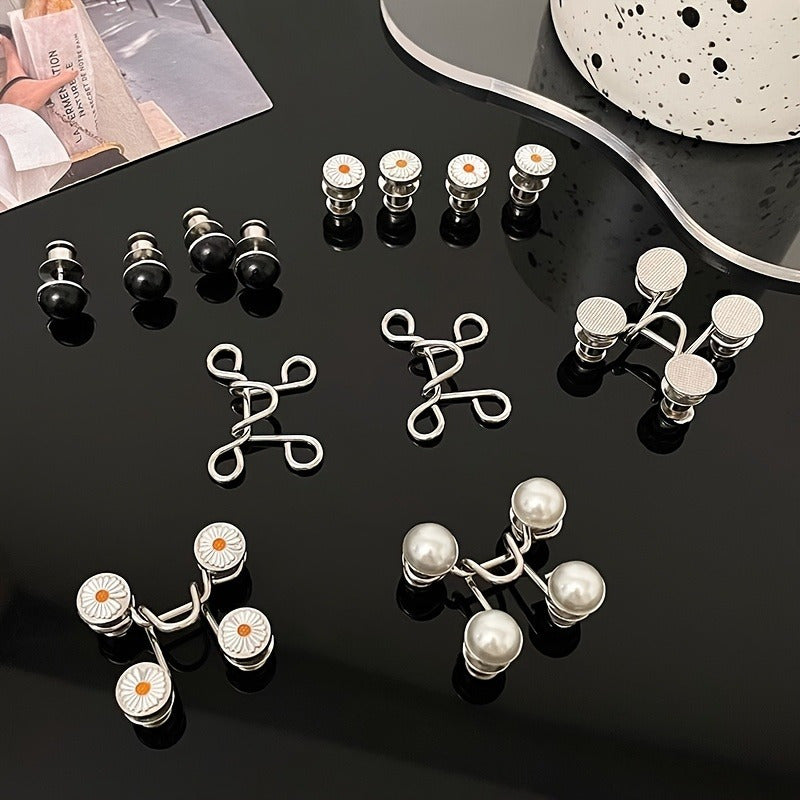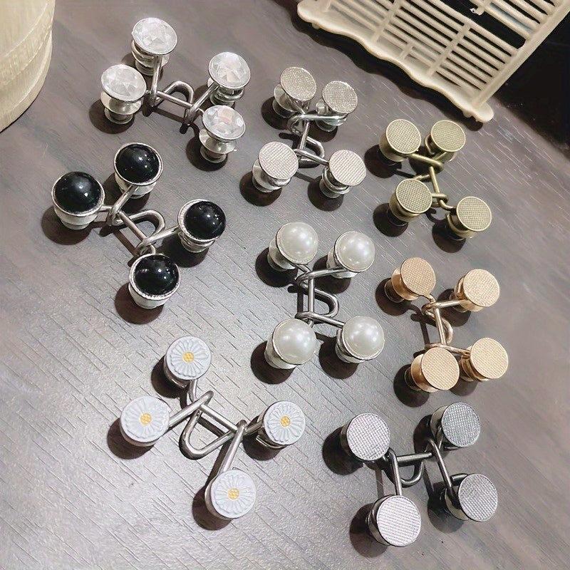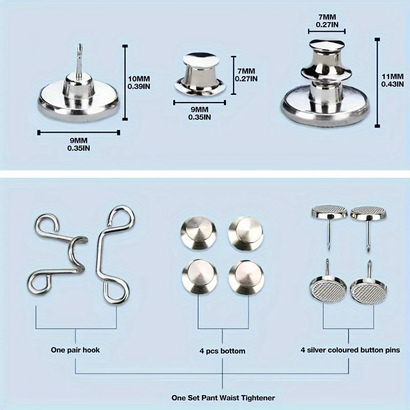 Aktualisieren Sie Ihre Jeans mit diesem Satz von 4 Metall -Denim -Taste -Stiften mit verstellbaren Taillenstraffungsbändern mit strapazierfähigen Schnappverschluss. Perfektes Geschenk für diejenigen, die stilvolle Taillenanpassungen lieben.
