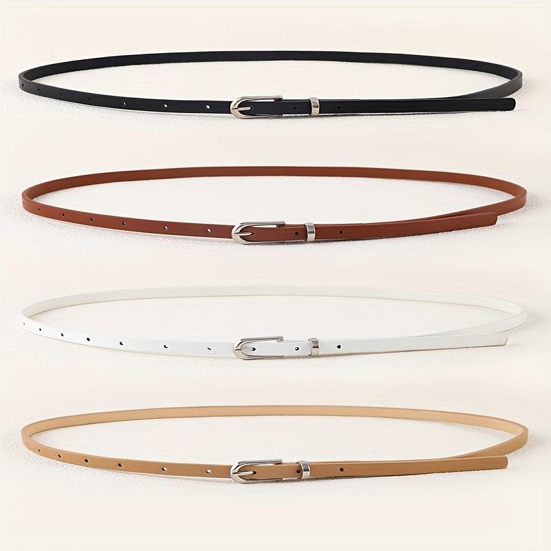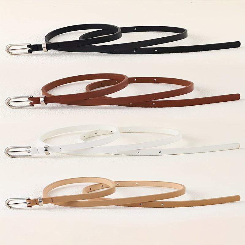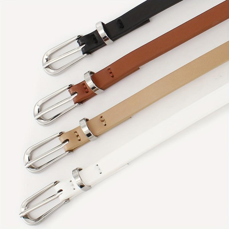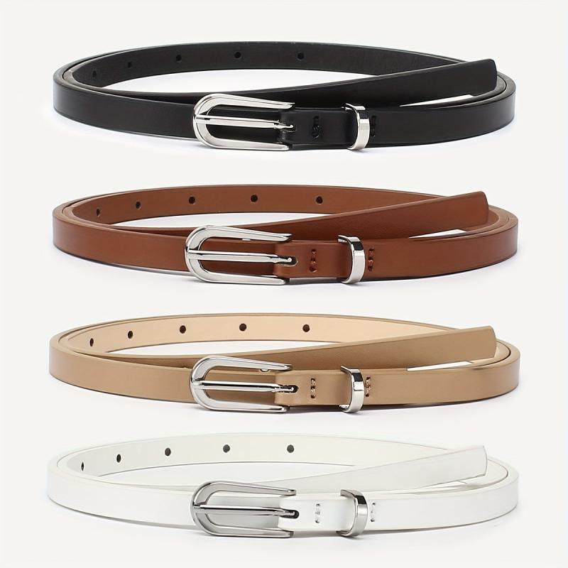 Get this combination pack of 4 versatile belts suitable for skirts, pants, and holiday outfits. The solid silvery pin buckle adds a touch of elegance to your look.