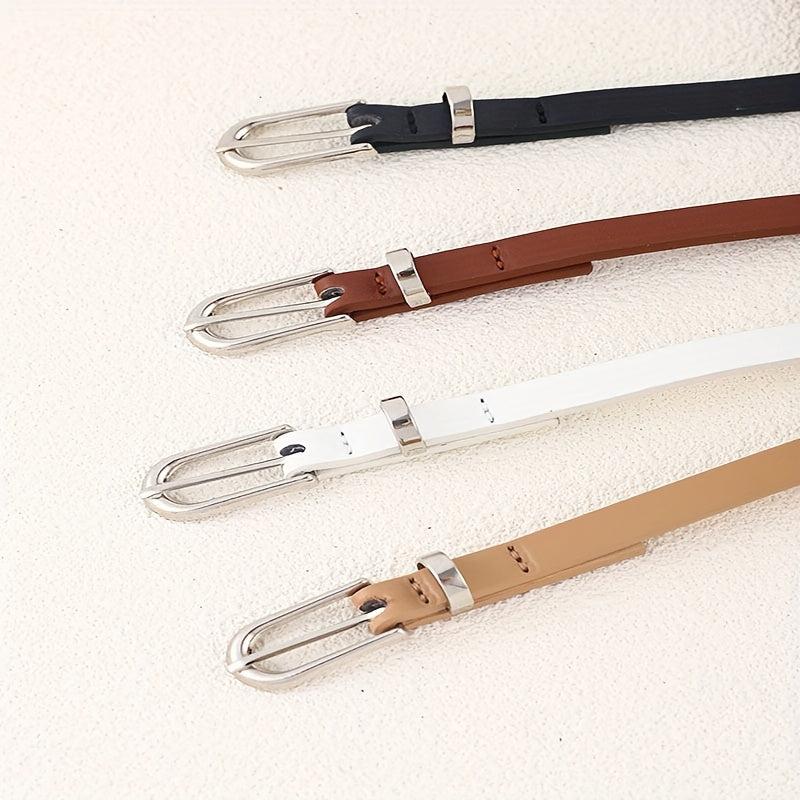 4pcs Solid Silvery Pin Buckle Belts Casual Business Style