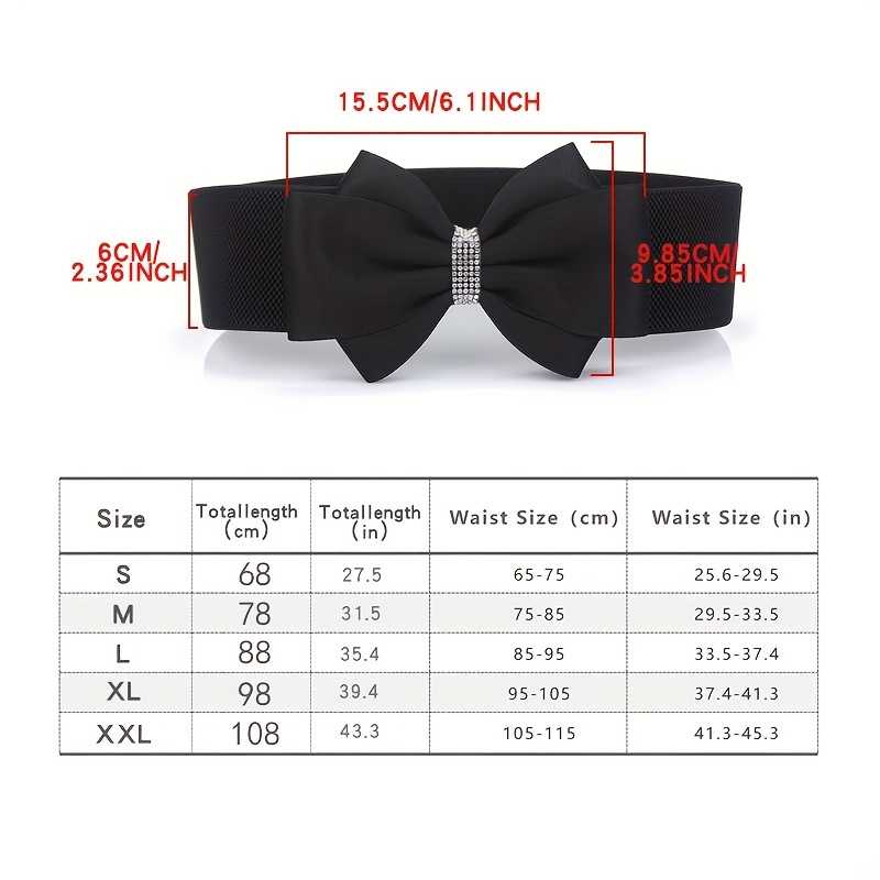 Bling Queen ist eine erschwingliche Modeschmuckmarke mit verschiedenen Produkttypen wie Armbändern, Halsketten, Ohrringen, Ringen usw., geeignet für Frauen, Männer und Kinder. Der elastische, breite Gürtel mit großer Schleife für Damen ist ein stilvolles und funktionales Accessoire, das jedes Outfit mit einem Hauch von Charme und Raffinesse aufwertet. Dieser Gürtel vereint Komfort und Ästhetik perfekt und ist ein Must-have für jede Garderobe, insbesondere für alle, die Mode und Vielseitigkeit schätzen. Der aus hochwertigem Gummi gefertigte Gürtel bietet Flexibilität und sorgt für einen bequemen Sitz an allen Körperformen. Das breite Design bietet nicht nur Halt, sondern betont auch die Silhouette und macht ihn zur idealen Wahl für verschiedene Outfits. Dank seiner Elastizität passt sich der Gürtel bequem an verschiedene Taillengrößen an und ist somit eine hervorragende Option für Trägerinnen mit Übergröße. Das herausragende Merkmal dieses Gürtels ist die große Schleife, die eine verspielte und zugleich elegante Note verleiht. Die Schleife sitzt markant vorne, zieht die Blicke auf sich und setzt jedes Ensemble in Szene. Dieses einzigartige Designelement unterstreicht nicht nur die Optik des Gürtels, sondern verleiht ihm auch eine feminine Note, die Kleider, Mäntel und vieles mehr perfekt ergänzt.