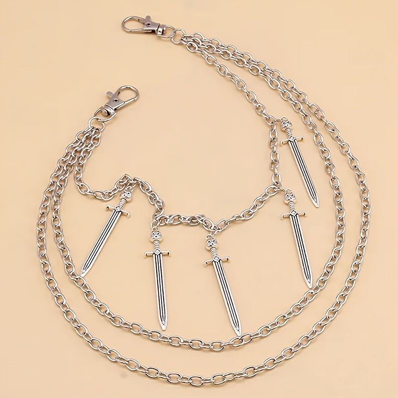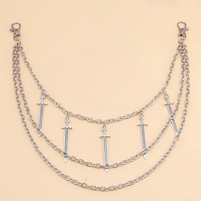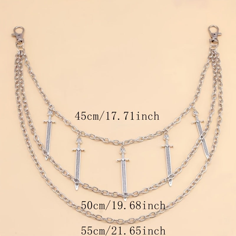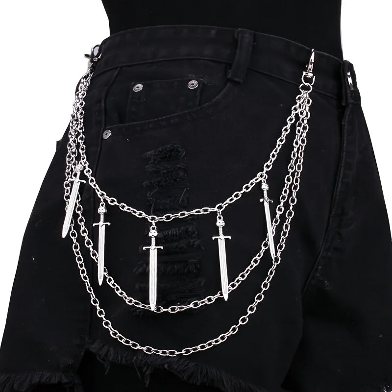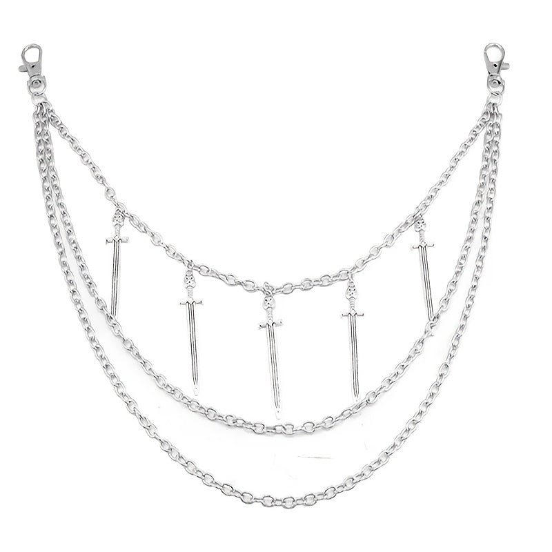 Fügen Sie Ihren Outfits mit dieser silbernen Cross -Schwerthosenkette einen Hauch von Bohemian Punk Flair hinzu. Perfekt für ungezwungene Looks für Freizeit-, Strand-, Abend- oder Date -Night -Looks.