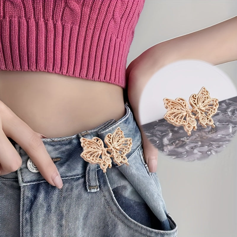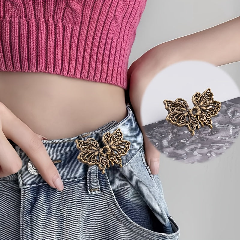 Verbessern Sie Ihr Outfit mit diesen aus Schmetterchen geformten Taillenbändern, die Ihre Taille betonen. Sie sind in goldenen, silbernen Grau- und Bronzarben mit einer verstellbaren Anti-Schlupf-Schnalle erhältlich. Die abnehmbare dekorative Funktion verleiht Ihren Jeans eine stilvolle Note.