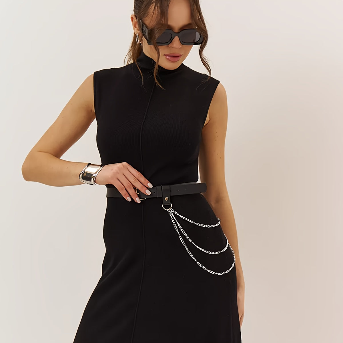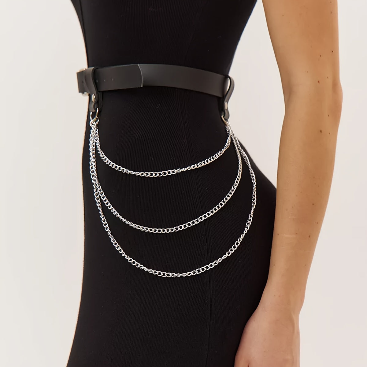 Erhöhen Sie Ihr Outfit mit diesem kantigen Gurtgürtel mit Nietakzenten und einem Nicht-Textil-Gewebe. Perfekt für Partys, Wochenenden, Freizeitausflüge und Nächte.