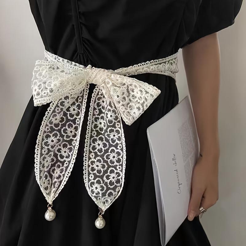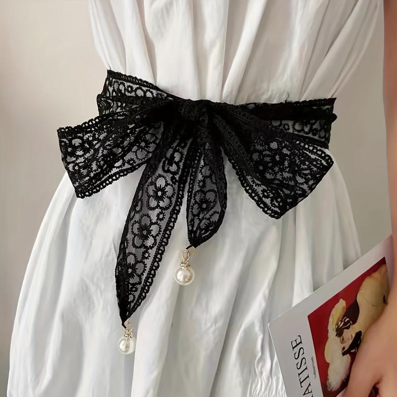 Add a touch of elegance to your outfit with this lace belt pearl waist chain. Perfect for dresses or jeans, it's a fashionable accessory that will elevate your look.