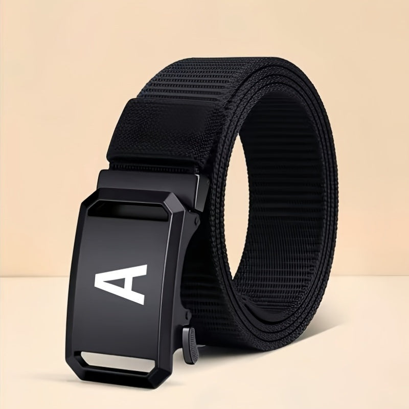 Upgrade your daily style with this men's belt featuring 26 letters design. Made of durable canvas with an automatic buckle, perfect for outdoor activities.