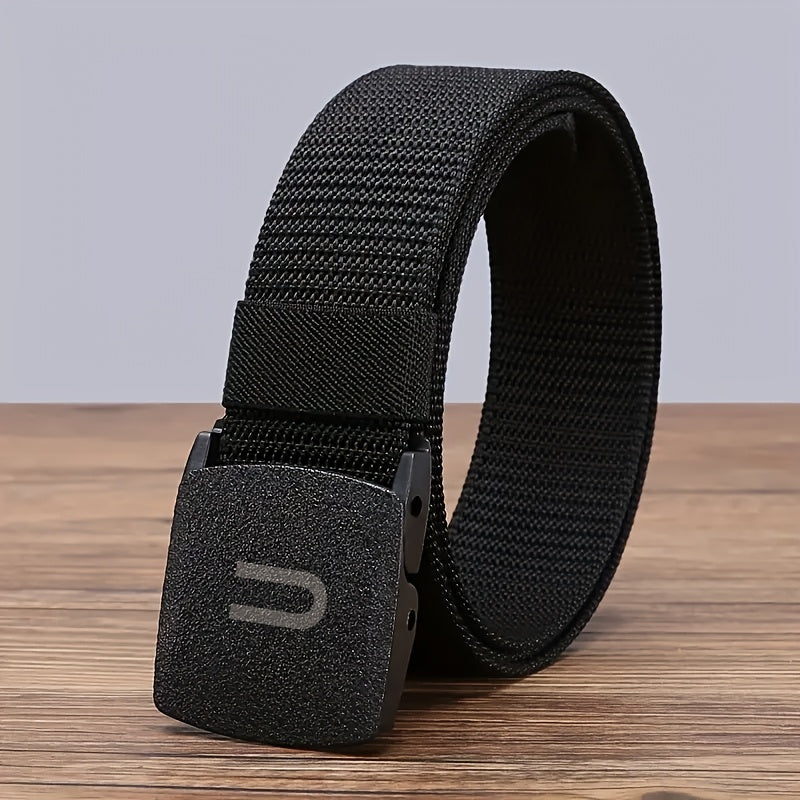 This men's belt is made of quick-dry nylon material with a plastic buckle that is hypoallergenic and durable. It is perfect for casual and outdoor wear.