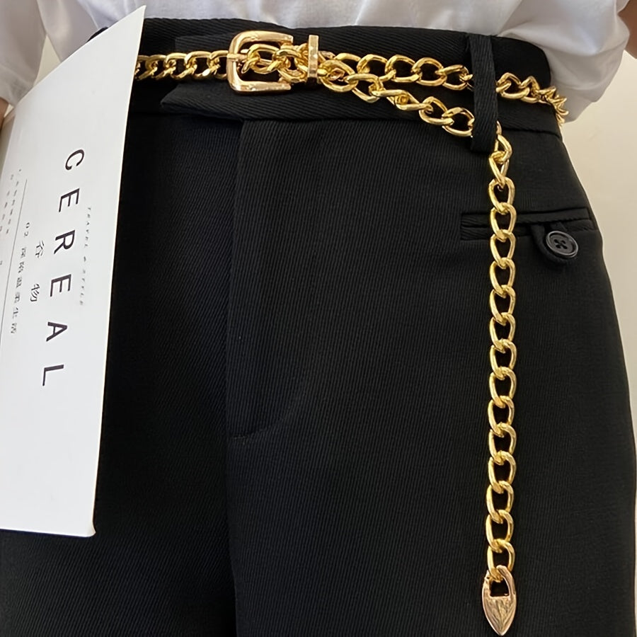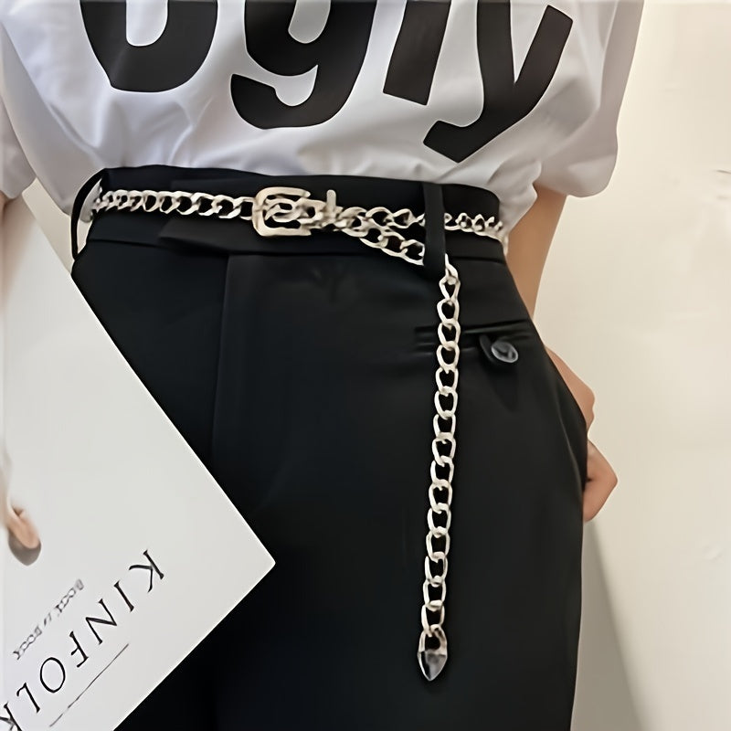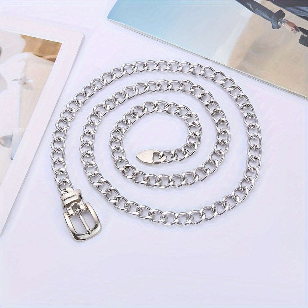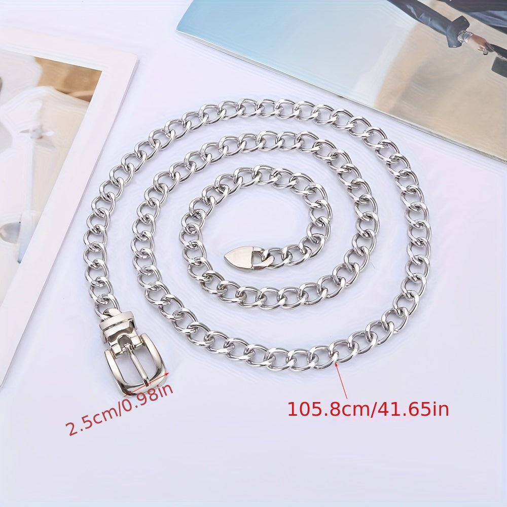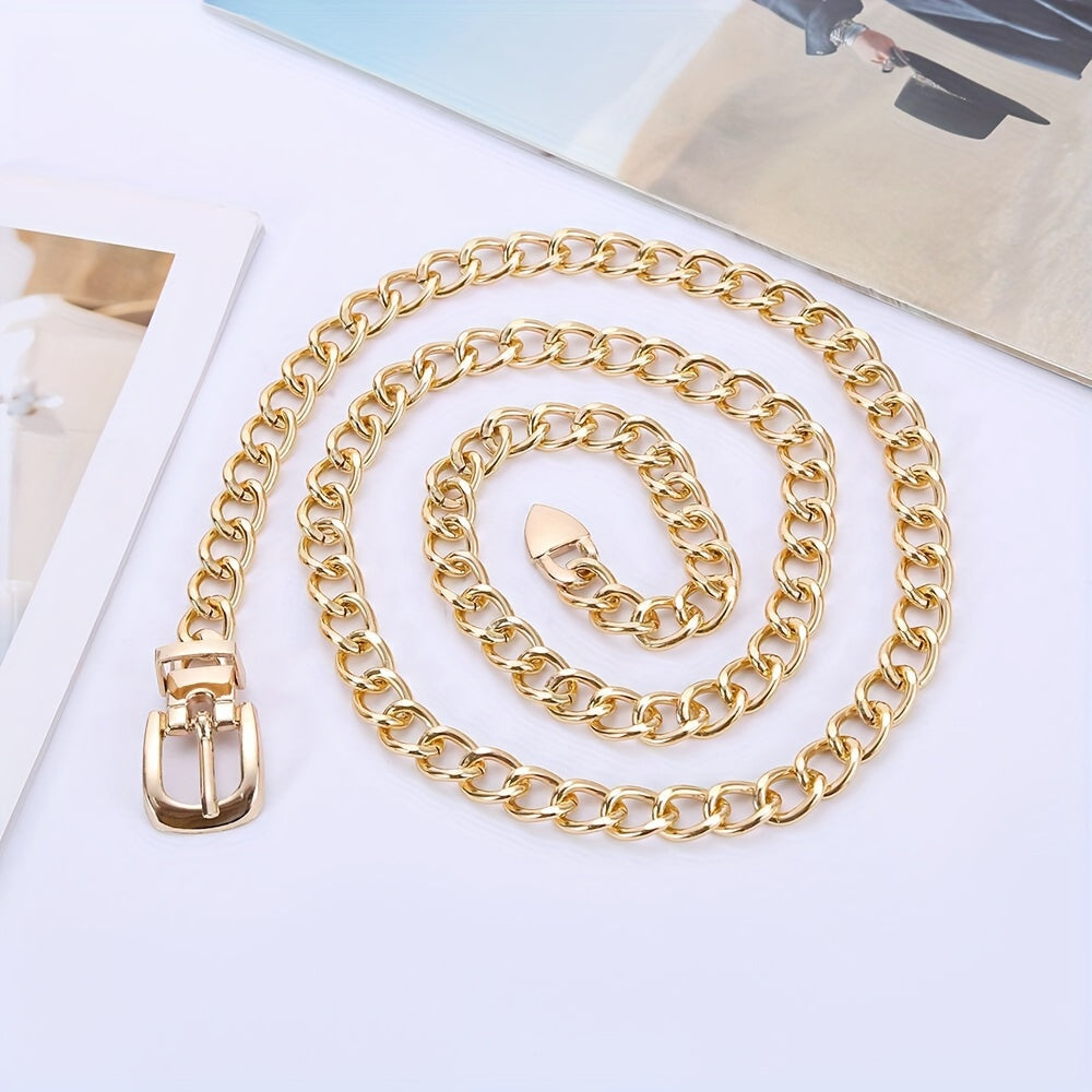 Dieser minimalistische Metallkettengürtel ist vielseitig und verfügt über ein hohles Design, das sowohl für lässige als auch für die elegante Kleidung perfekt ist. Fügen Sie Ihren Outfits mit diesem stilvollen Accessoire einen Hauch von Eleganz hinzu.