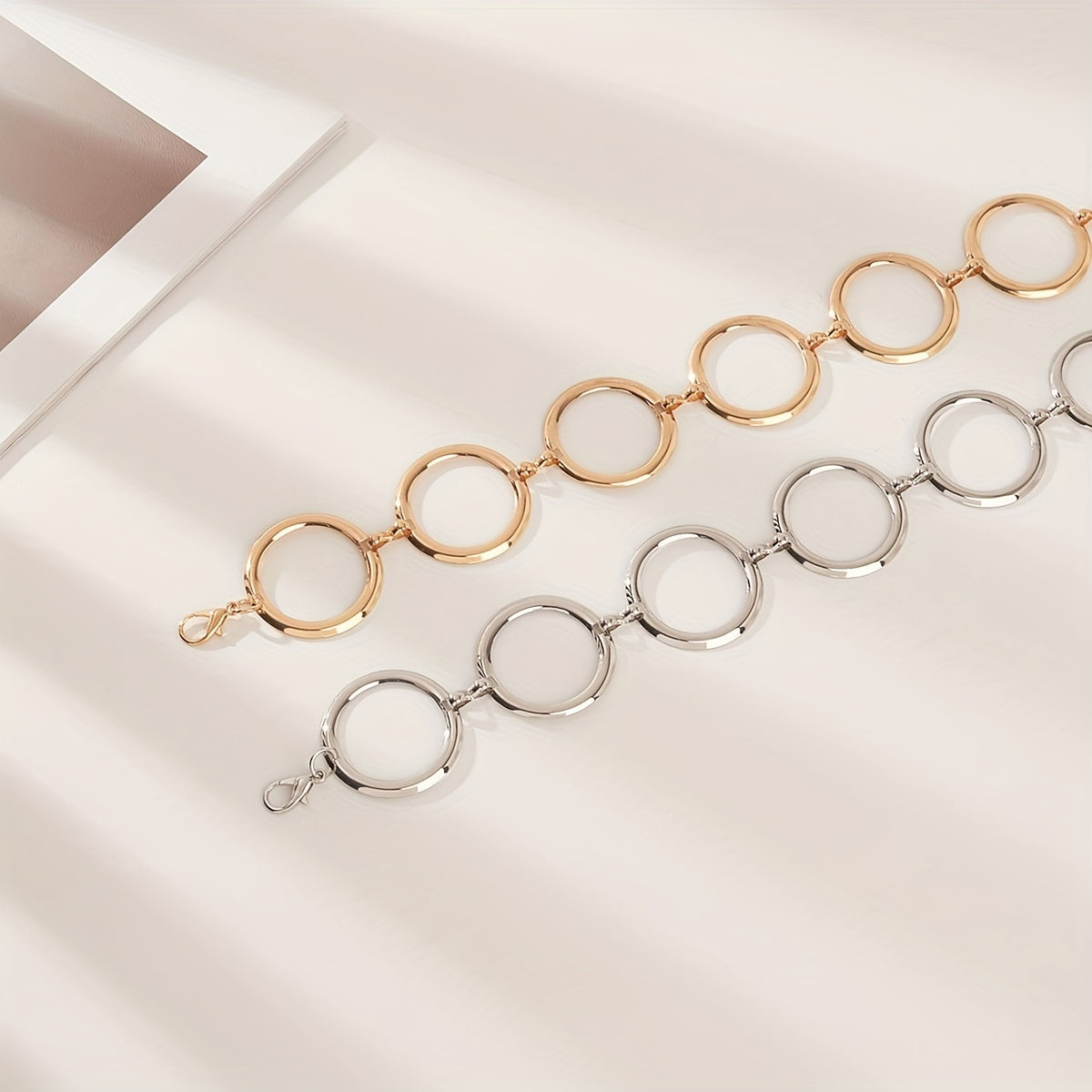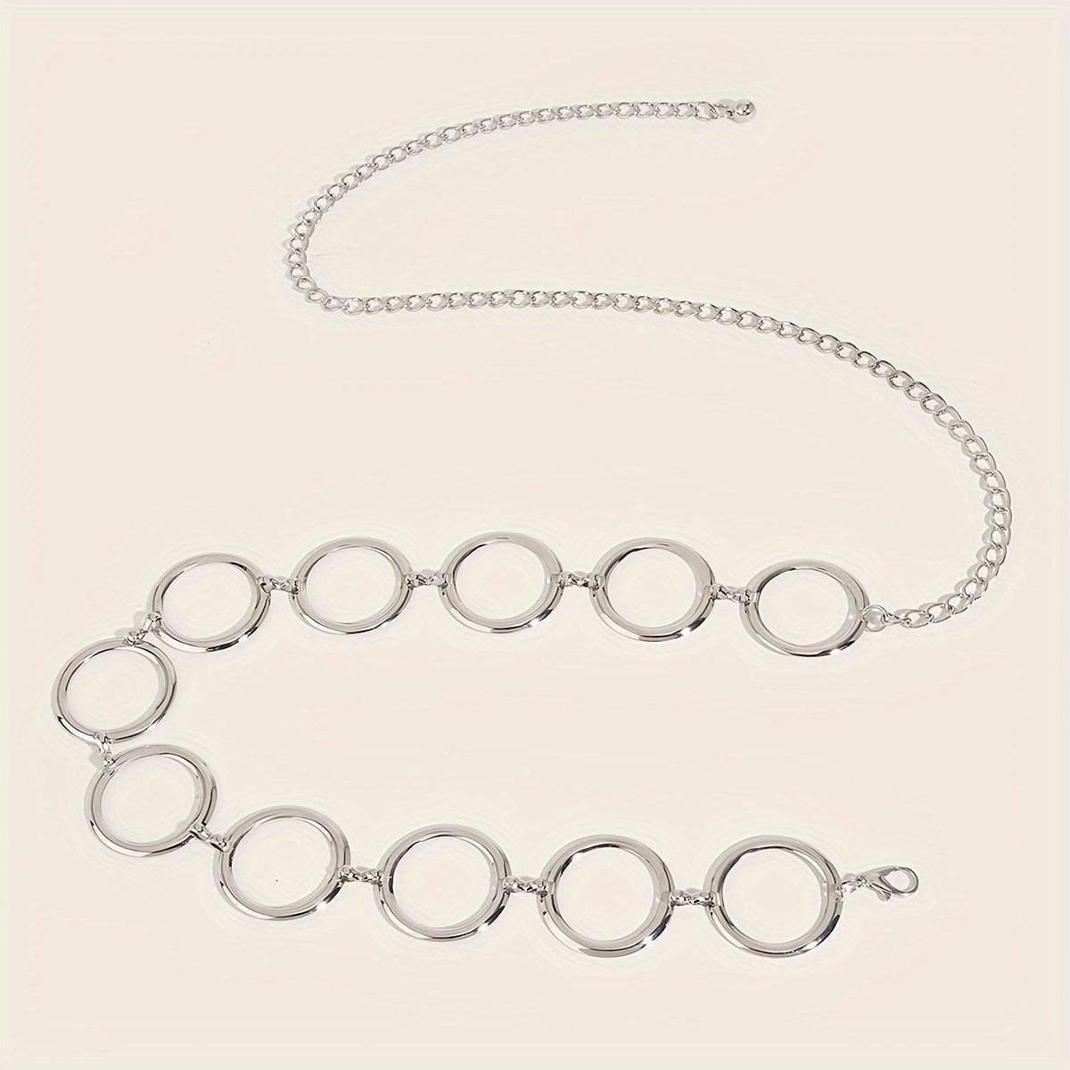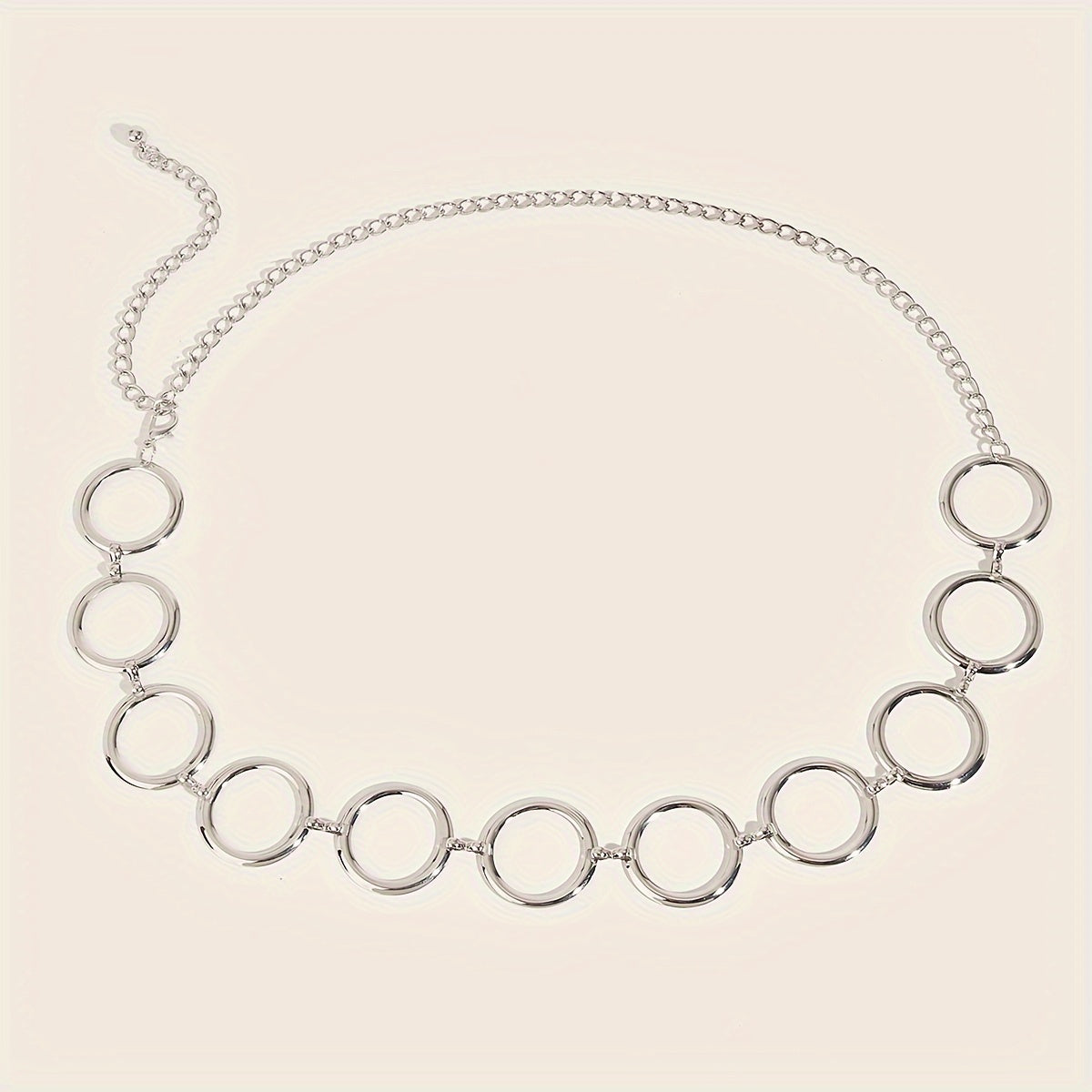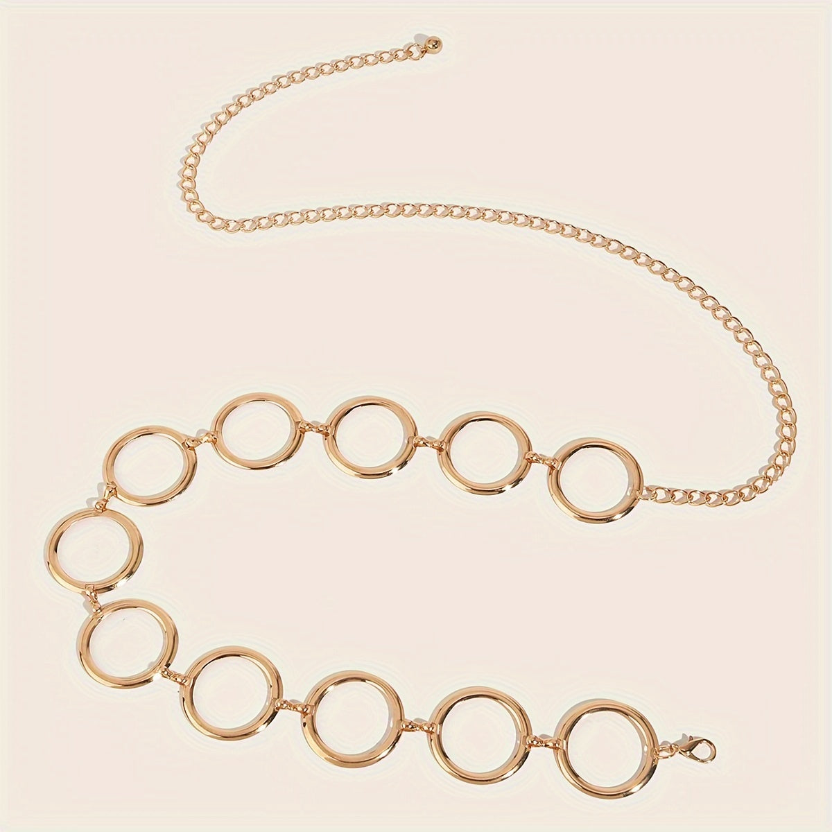 Verbessern Sie Ihr Outfit mit diesem vielseitigen goldenen Kettengürtel mit Hohlkreis -Design. Perfekt für Freizeitausflüge, Hochzeiten, Partys und mehr.