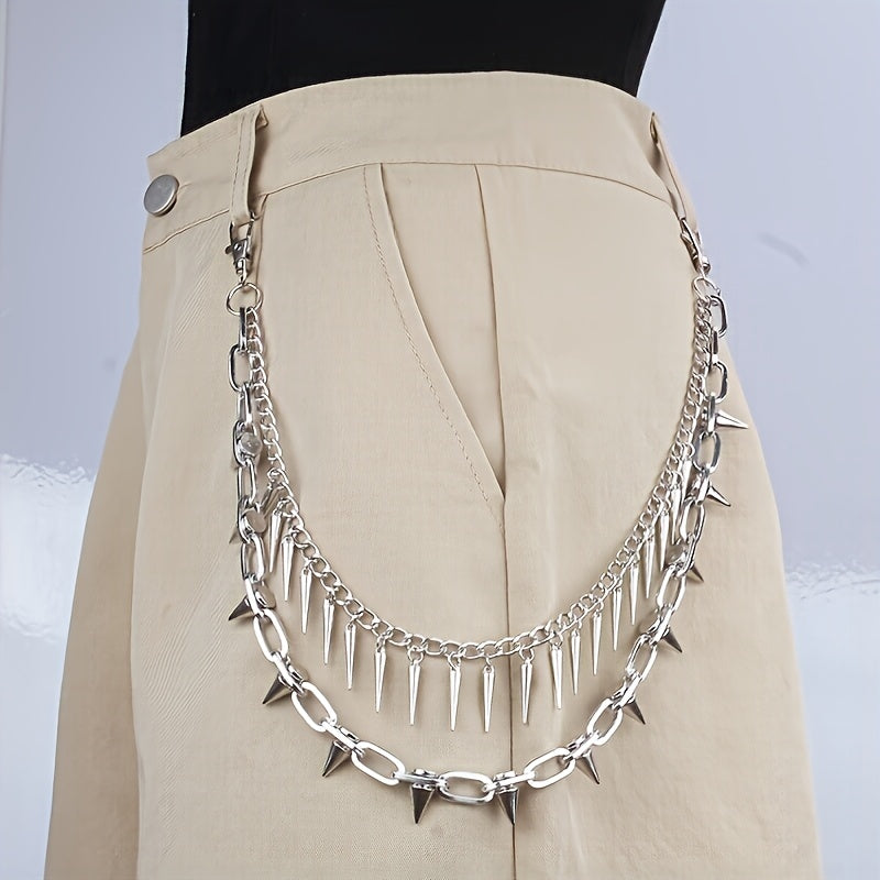 Dieser Taillenkettengürtel verfügt über Metallspitzen und Ketten, perfekt für Partys, College, tägliches Pendelverkehr und Casual Weary Weekend.