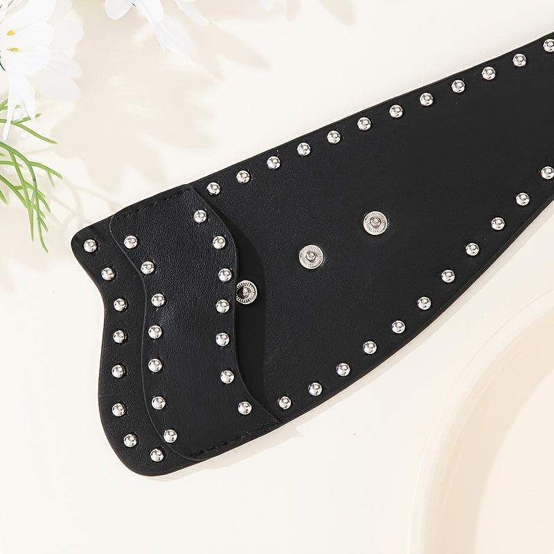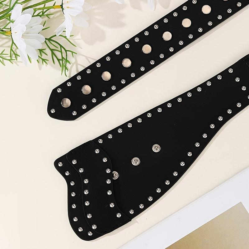 This Y2K belt with rivet embellishments adds a touch of punk style to your look. Versatile snap closure for parties, college, and casual outfits.