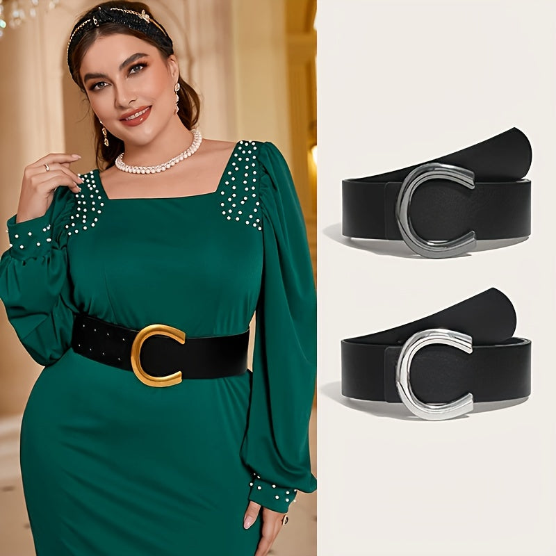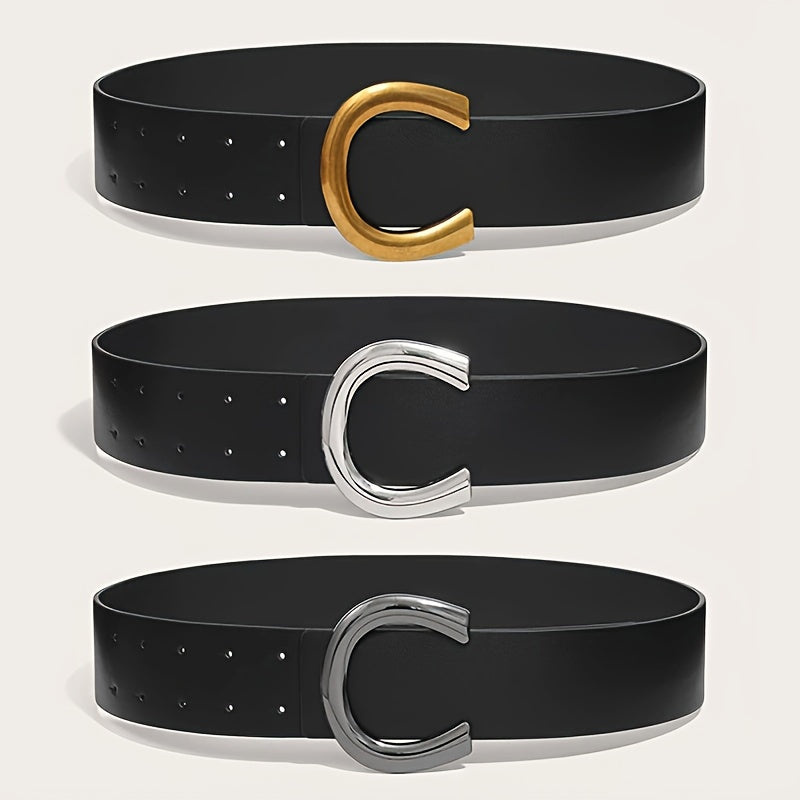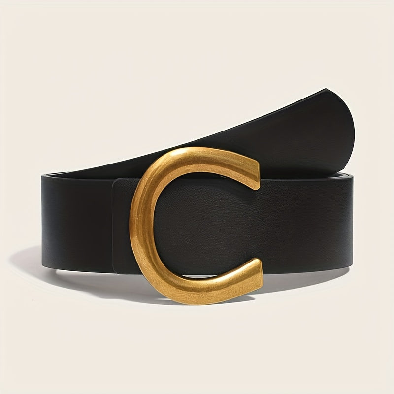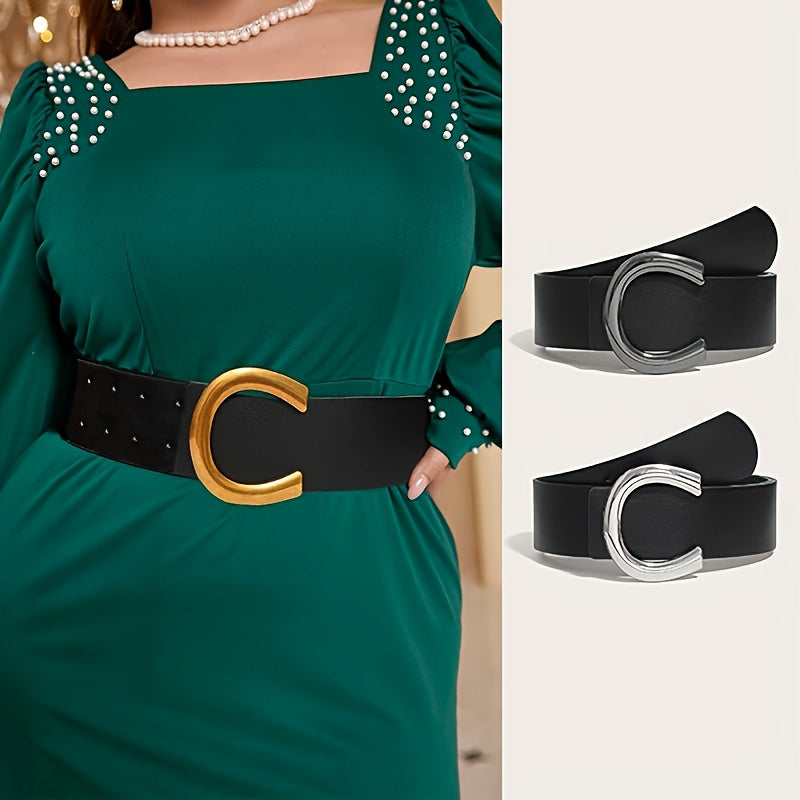 Fügen Sie Ihren Outfits einen Hauch von Eleganz mit diesem schicken breiten Gürtel mit einer goldenen C -Schnalle hinzu. Perfekt für die Kombination mit Kleidern, Mänteln und lässigen Streetwear. Der einstellbare 80 -Bund sorgt für eine komfortable Passform.