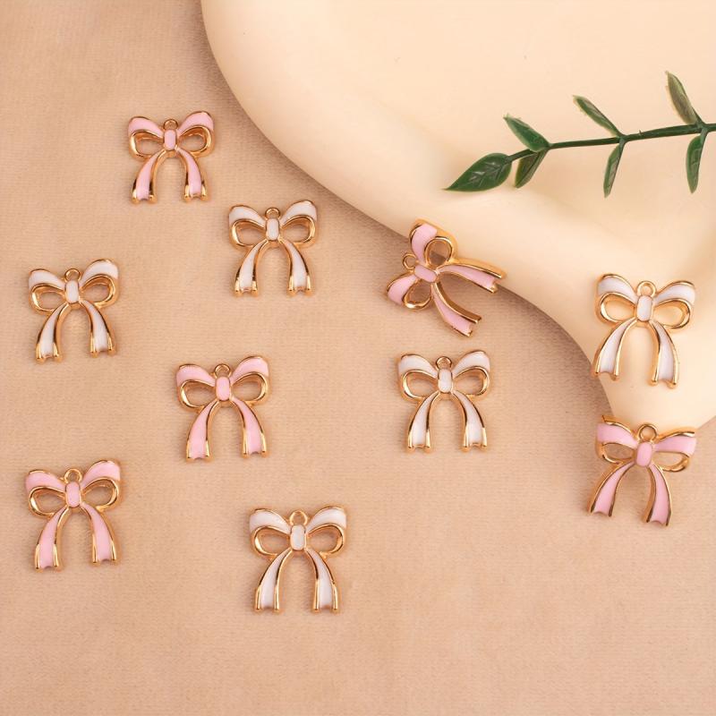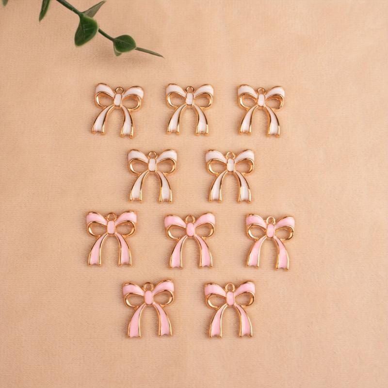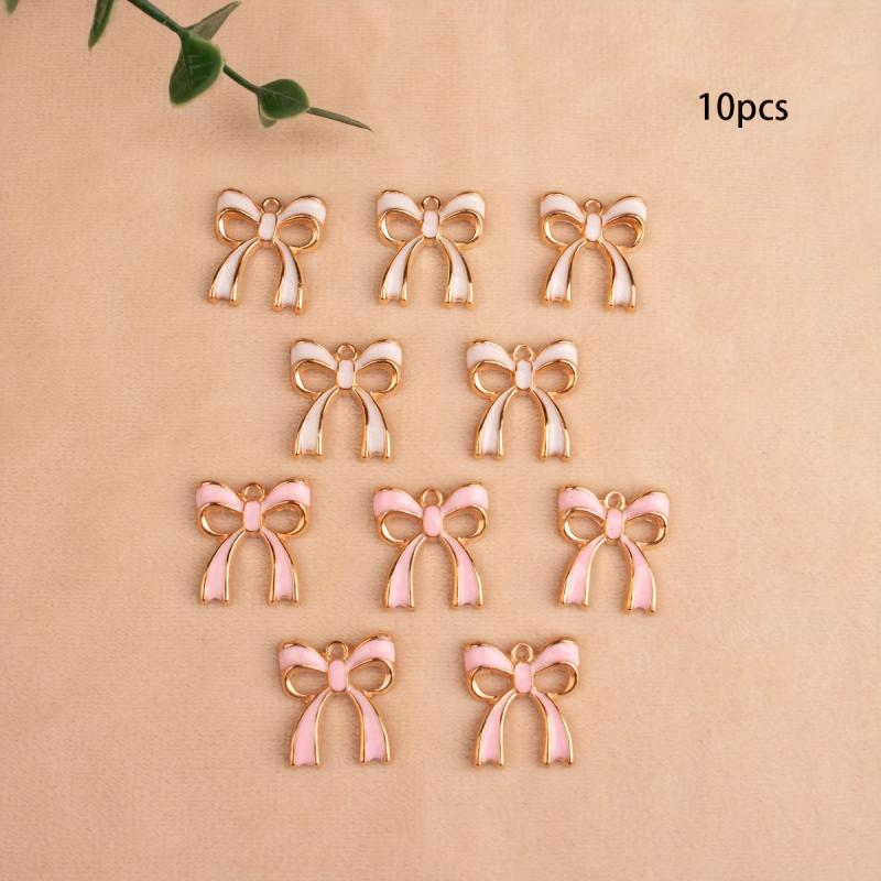 Create stunning jewelry pieces with this set of 10 bow knot pendants. Perfect for necklaces, earrings, bracelets, and keychains. Made of zinc alloy, these charms are high quality and versatile. Add a touch of elegance to your crafting projects.