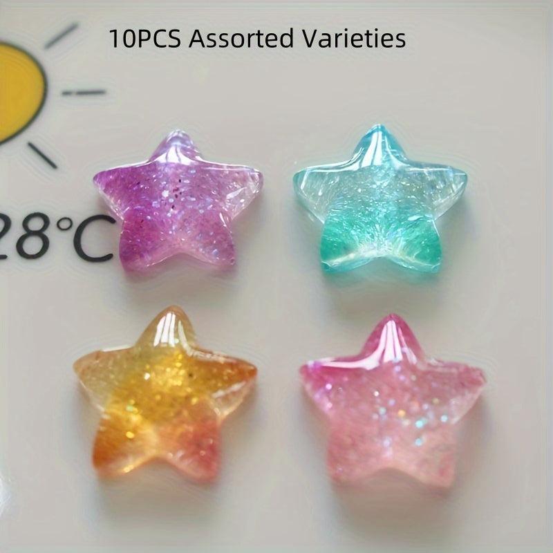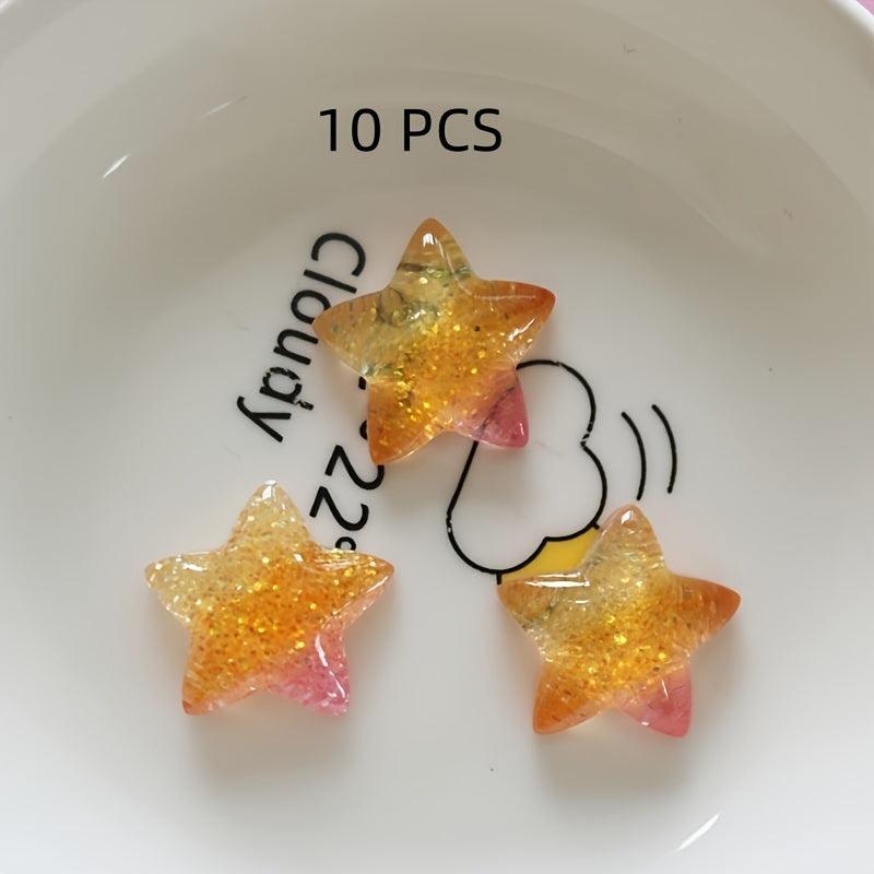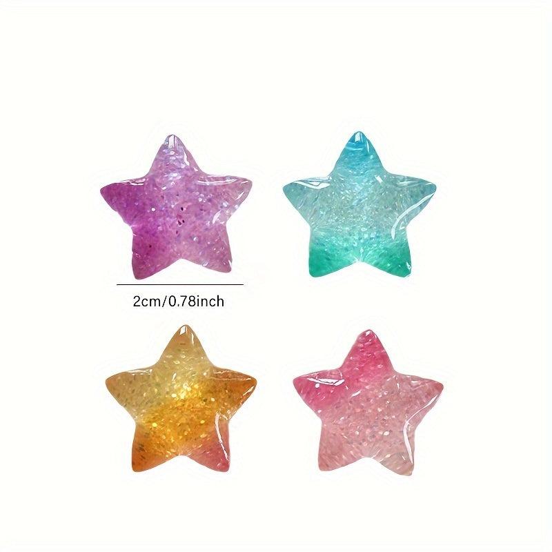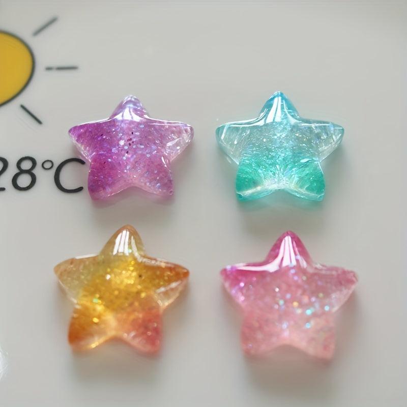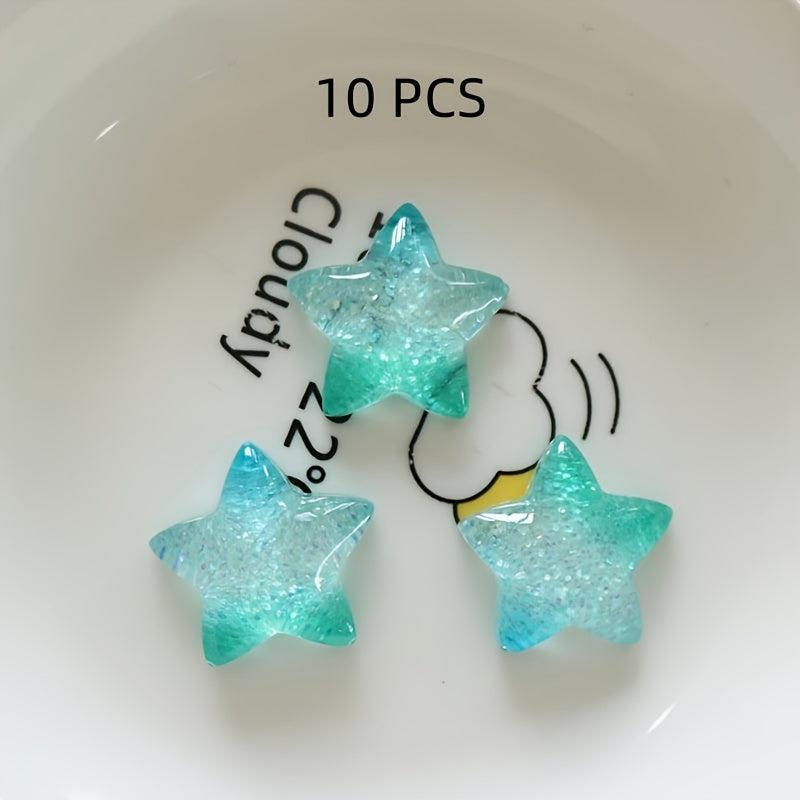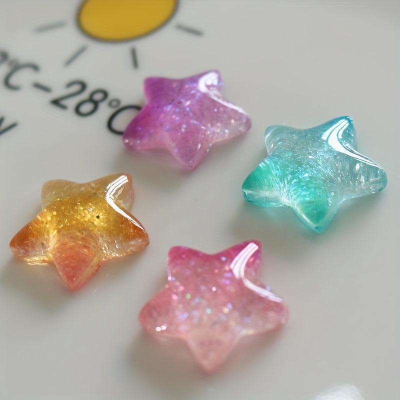 Add a touch of sparkle to your DIY projects with this pack of clear resin gradient star glitter charms. Perfect for crafting jewelry, phone cases, hair clips, and shoe accessories. Each charm features a transparent design with a subtle gradient effect.