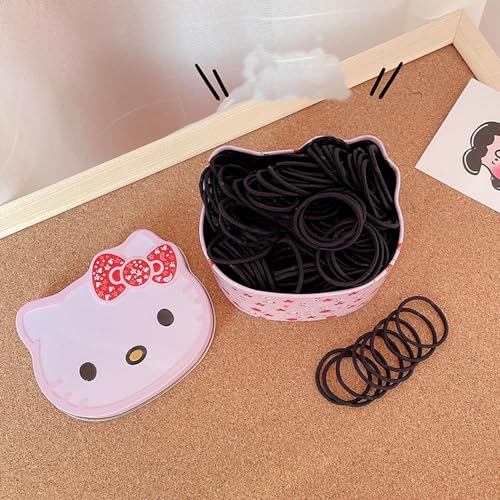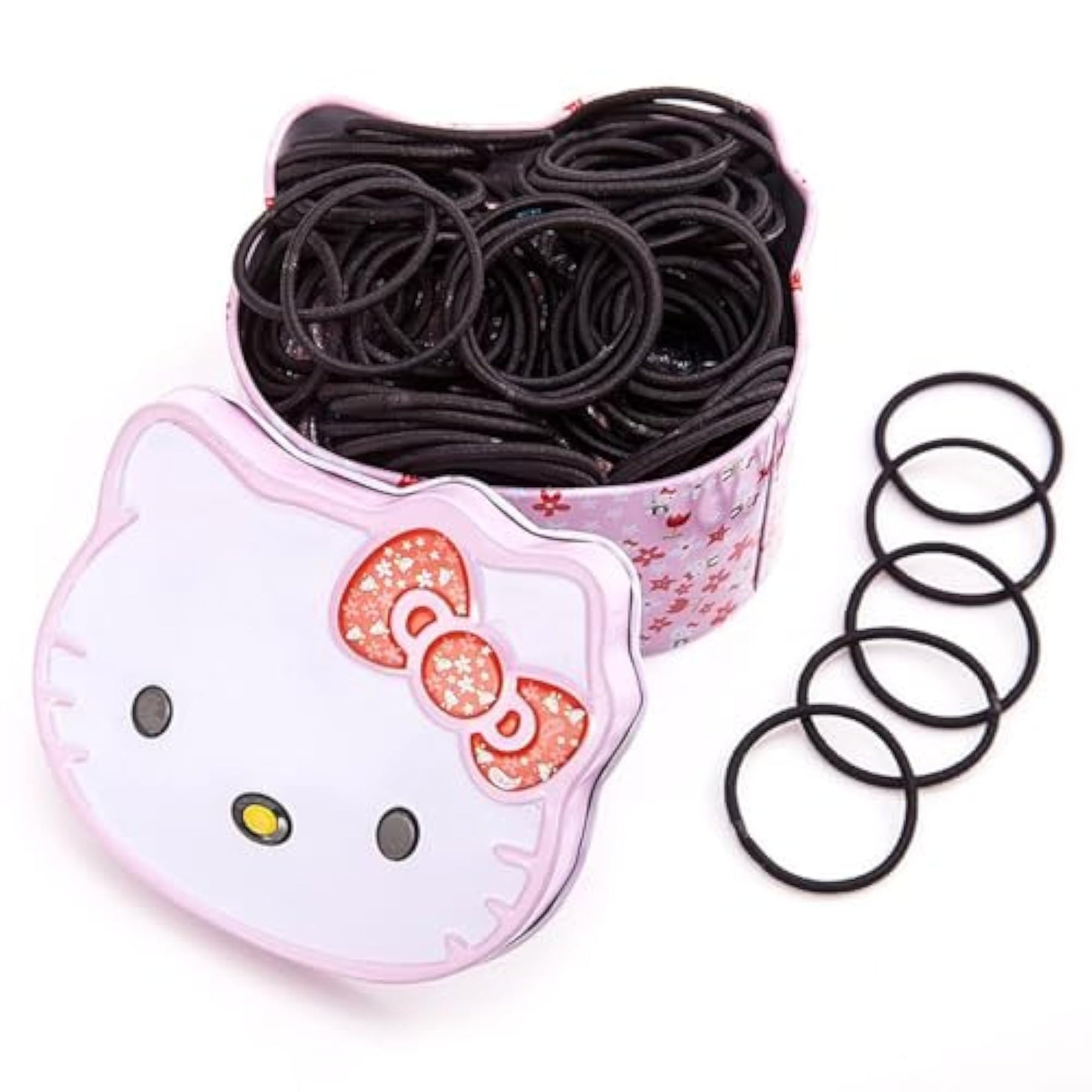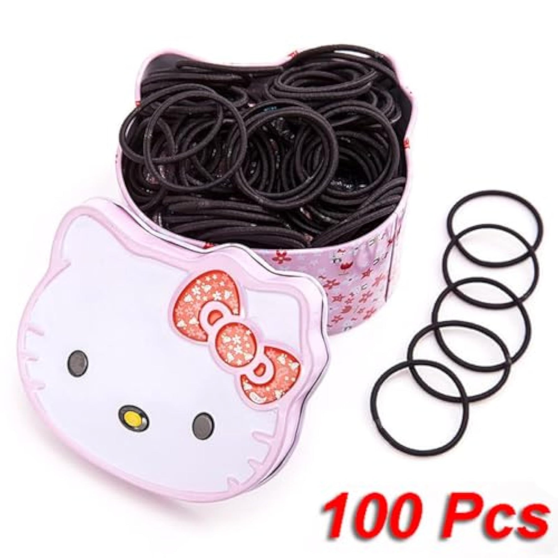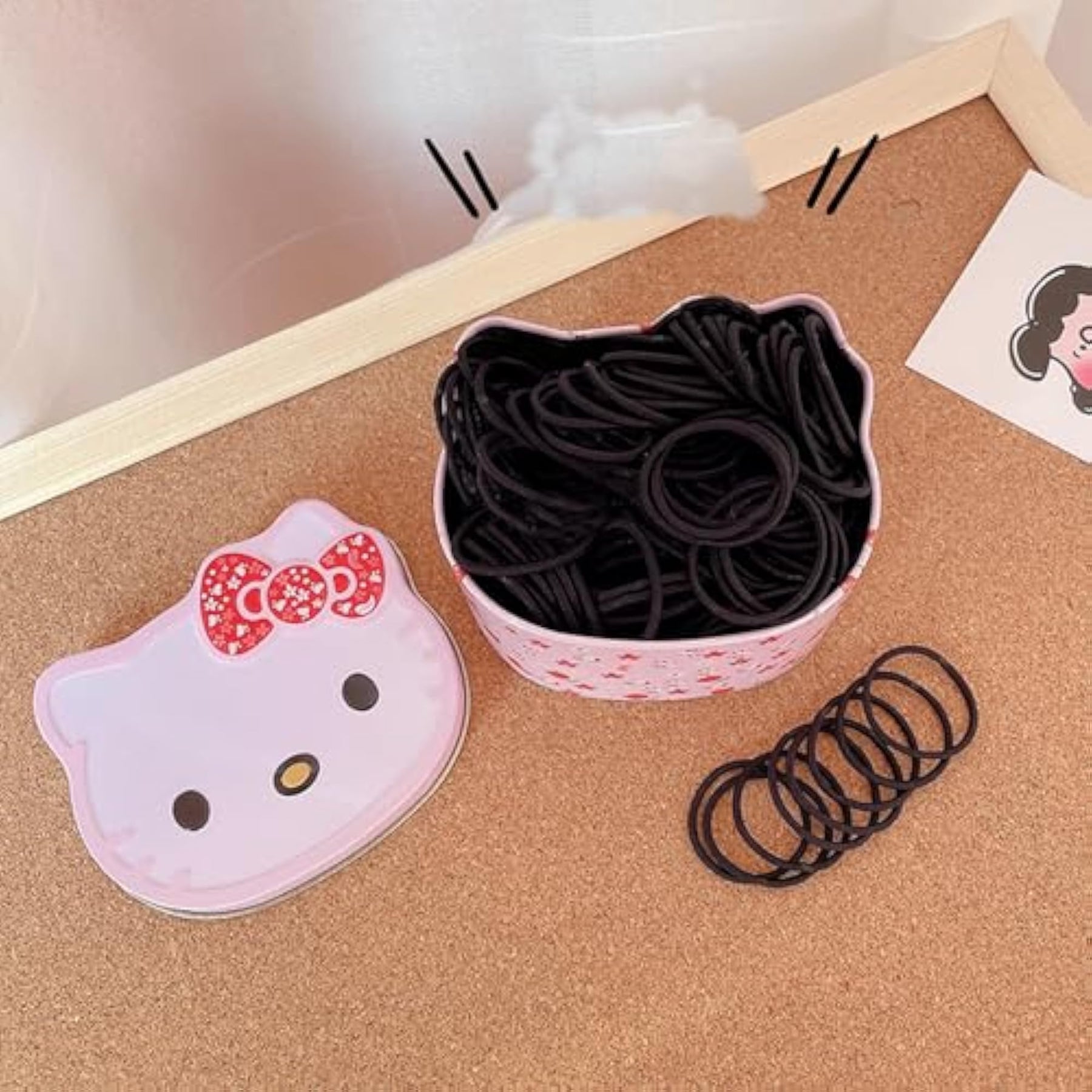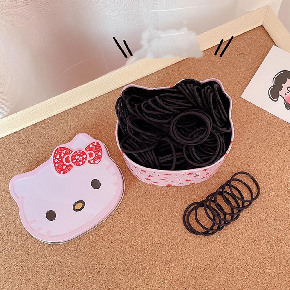 Get this combo set of 100 elastic hair bands and ties with a cute kitty tin box for easy storage. Perfect for various hairstyles and occasions.
