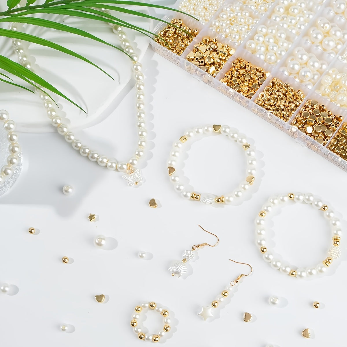 Create stunning DIY jewelry with this set of 1000 golden acrylic pearl beads. The beads come in a convenient 24-grid organizer for easy storage and access.
