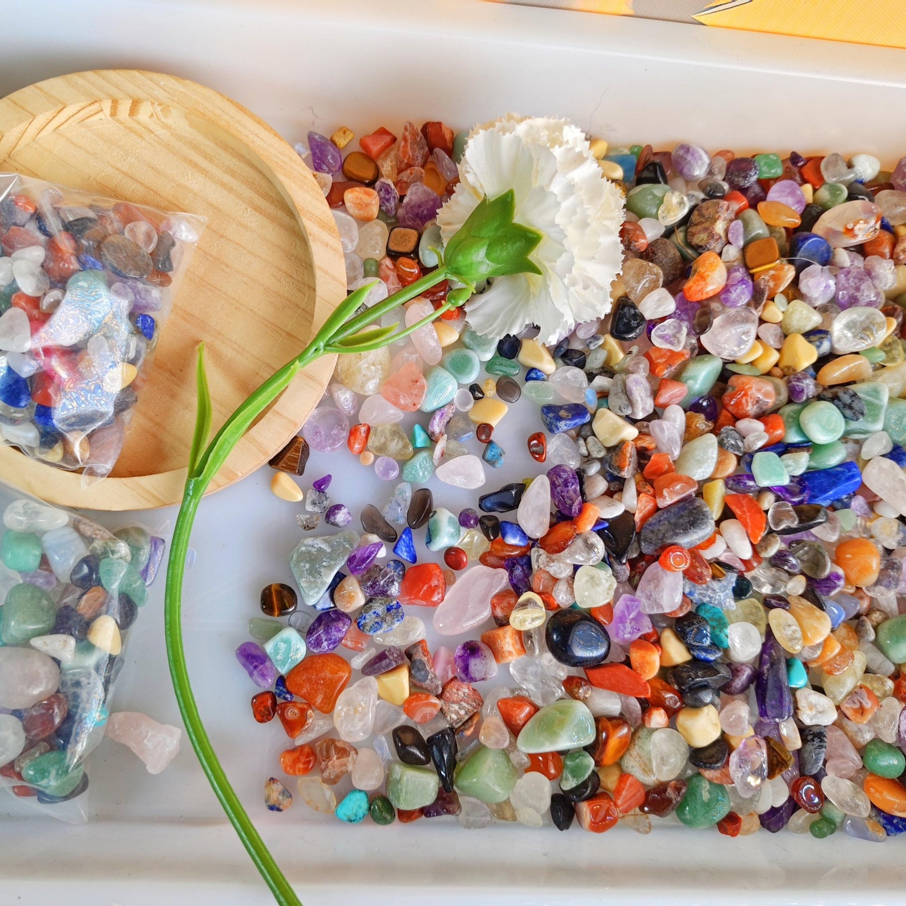 Add a touch of nature to your decor with this 100g or 200g bag of miscellaneous stone gravel. Perfect for crafting, terrariums, or as a decorative accent.