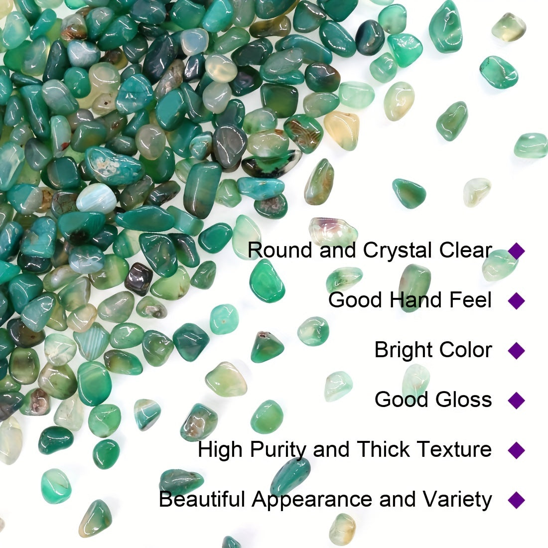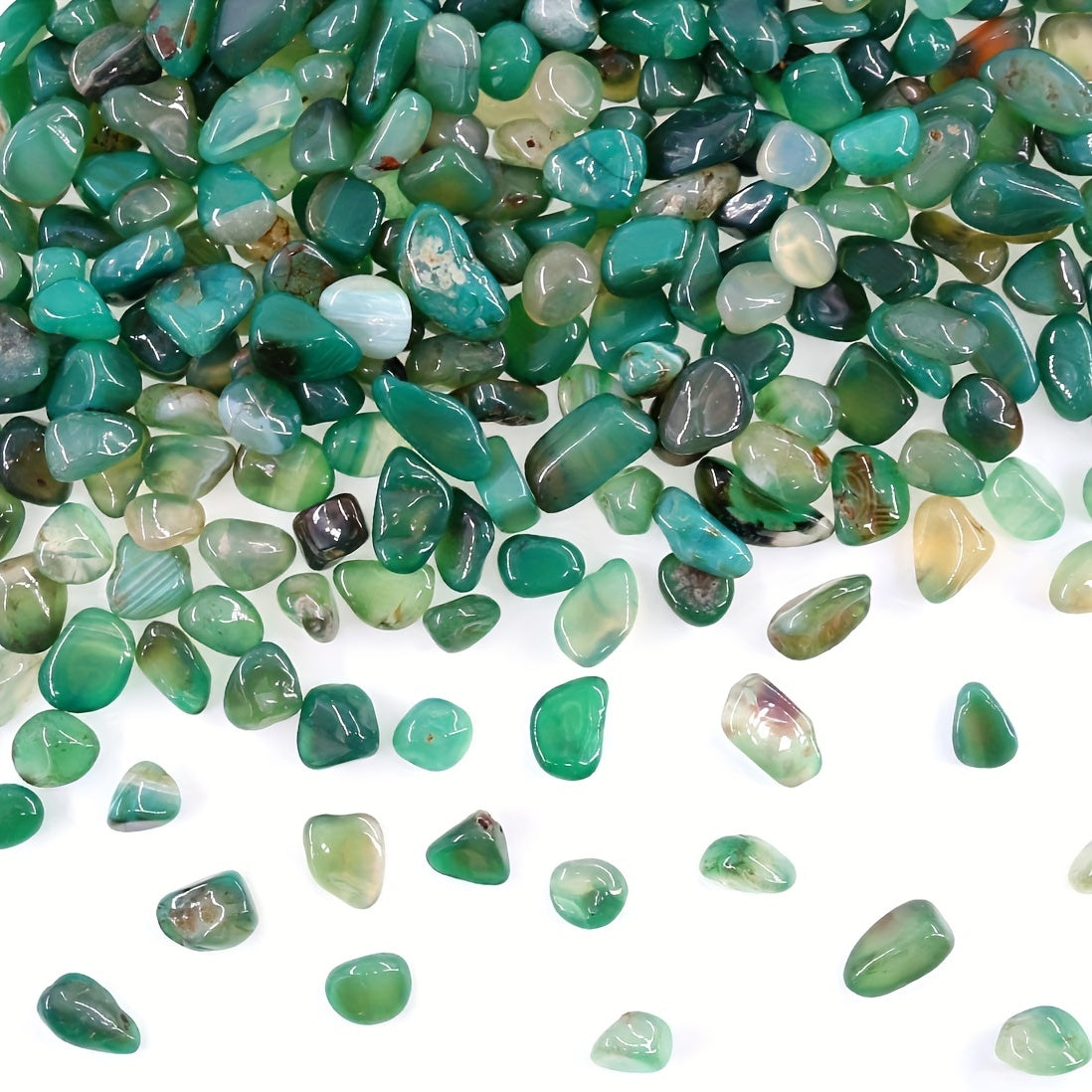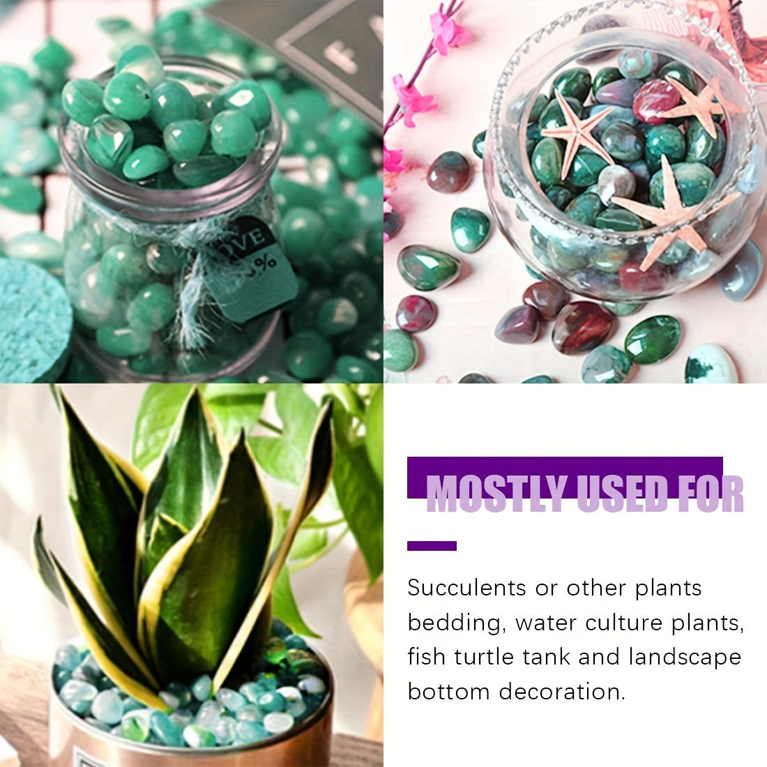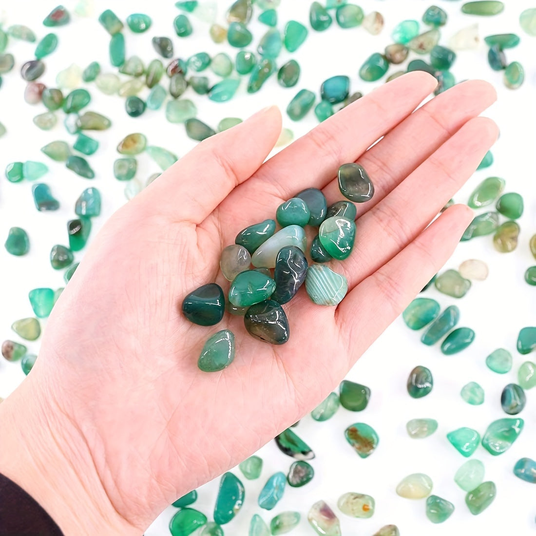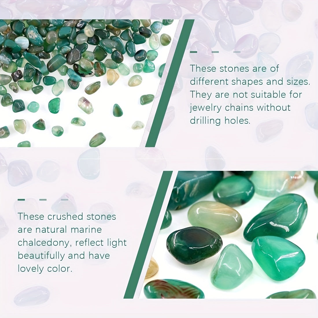 Enhance the energy of your plants with this 100gm natural green agate chip stone. Perfect for plant healing, crystal planter filler, terrarium supplies, and decorative rocks.