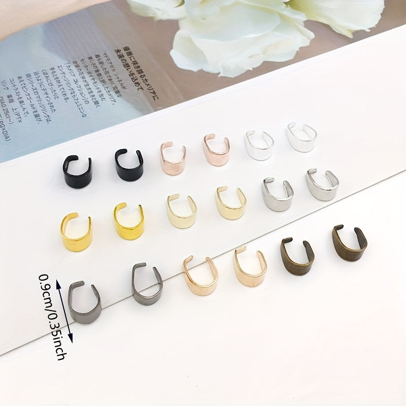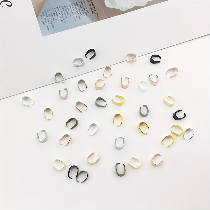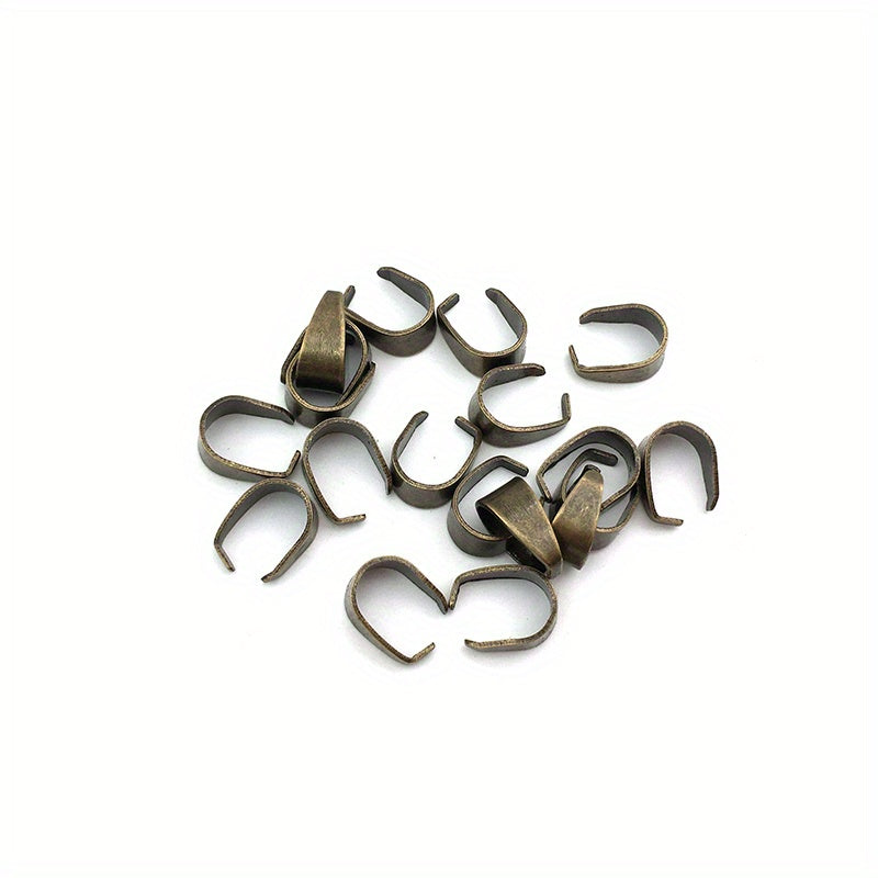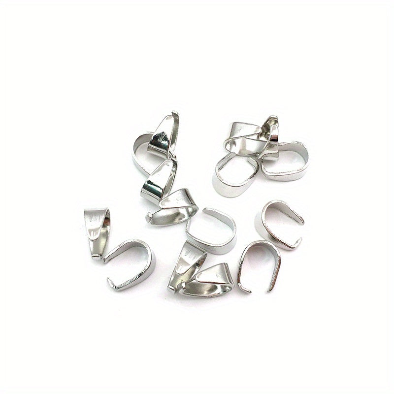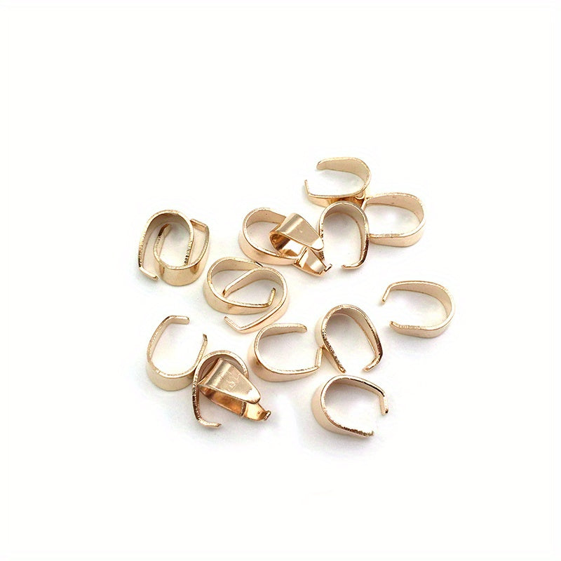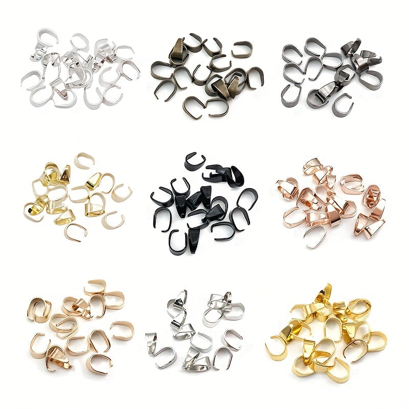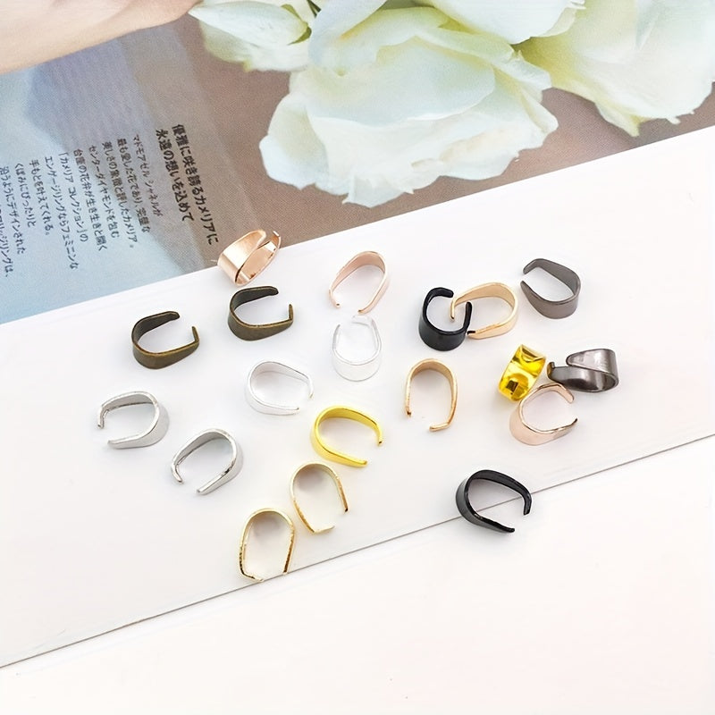 These 100pcs 6x9mm metal pinch bail clasps come in 9 colors plated pendant hooks clips connectors perfect for DIY necklace bracelets jewelry making.