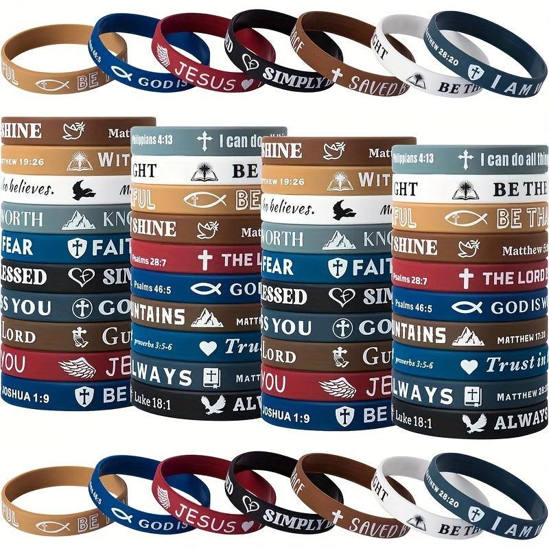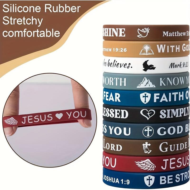 These inspirational Bible verse silicone bracelets are perfect Christian religious jewelry for men, women, and teens. Made of durable rubber, they feature faith-based messages to inspire and encourage.