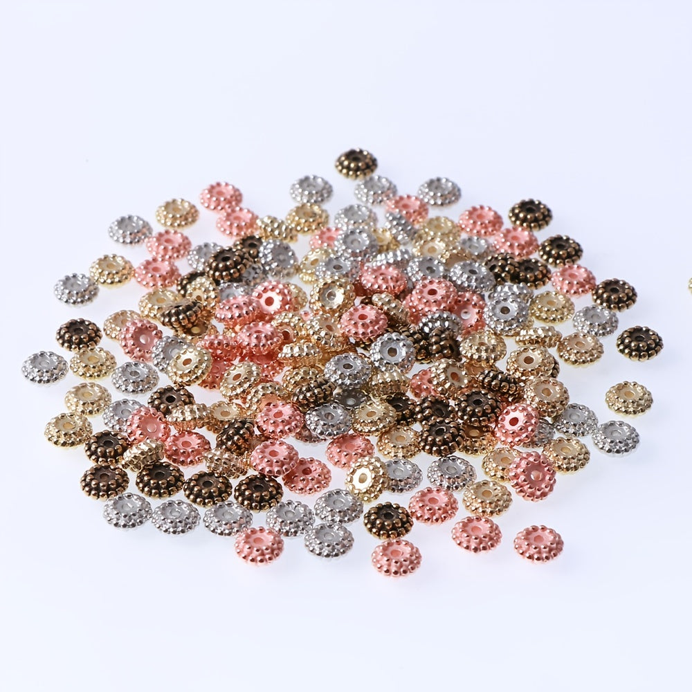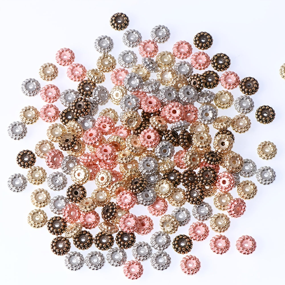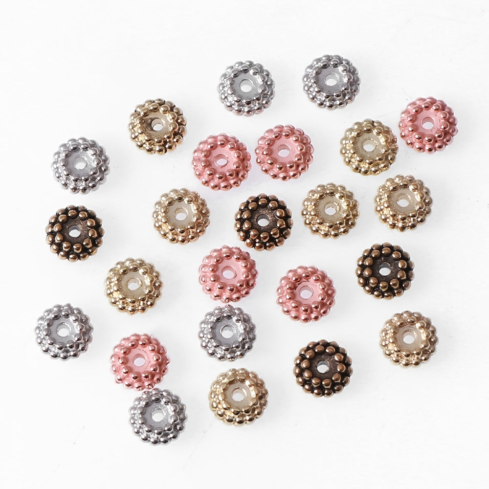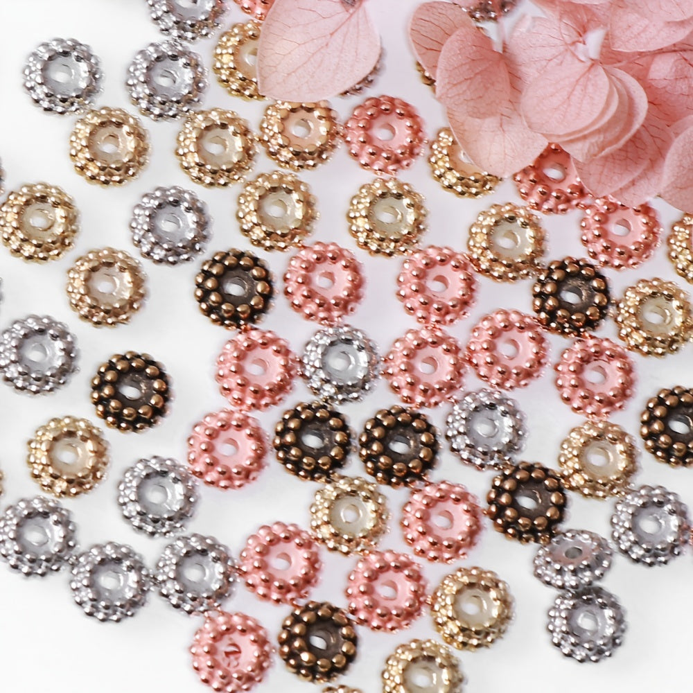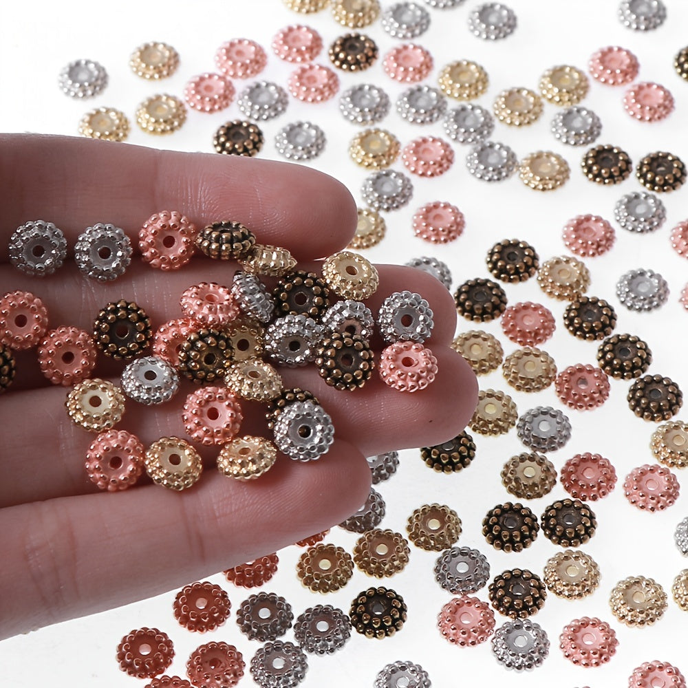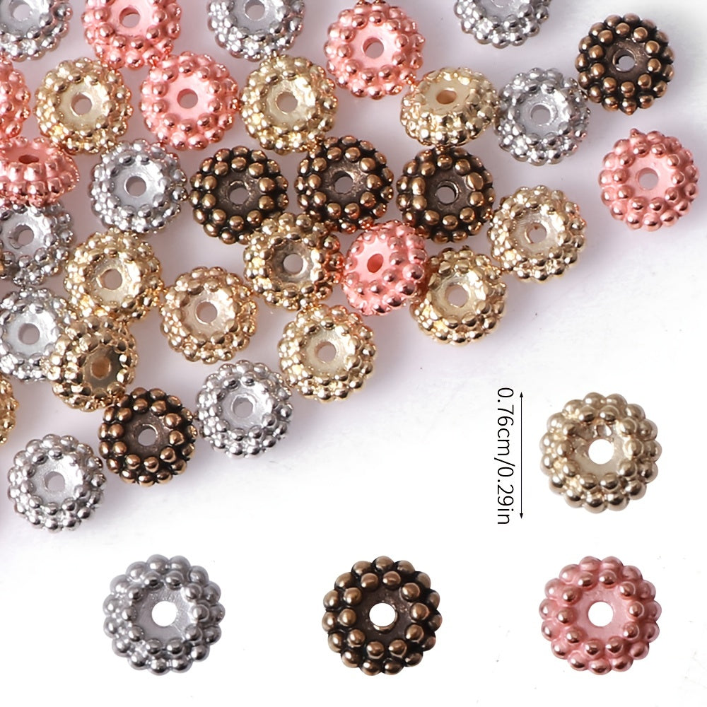 This pack includes 100 CCB three-dimensional round flower shape beads in a mixed assortment of colors. The beads measure 7.6mm in size.