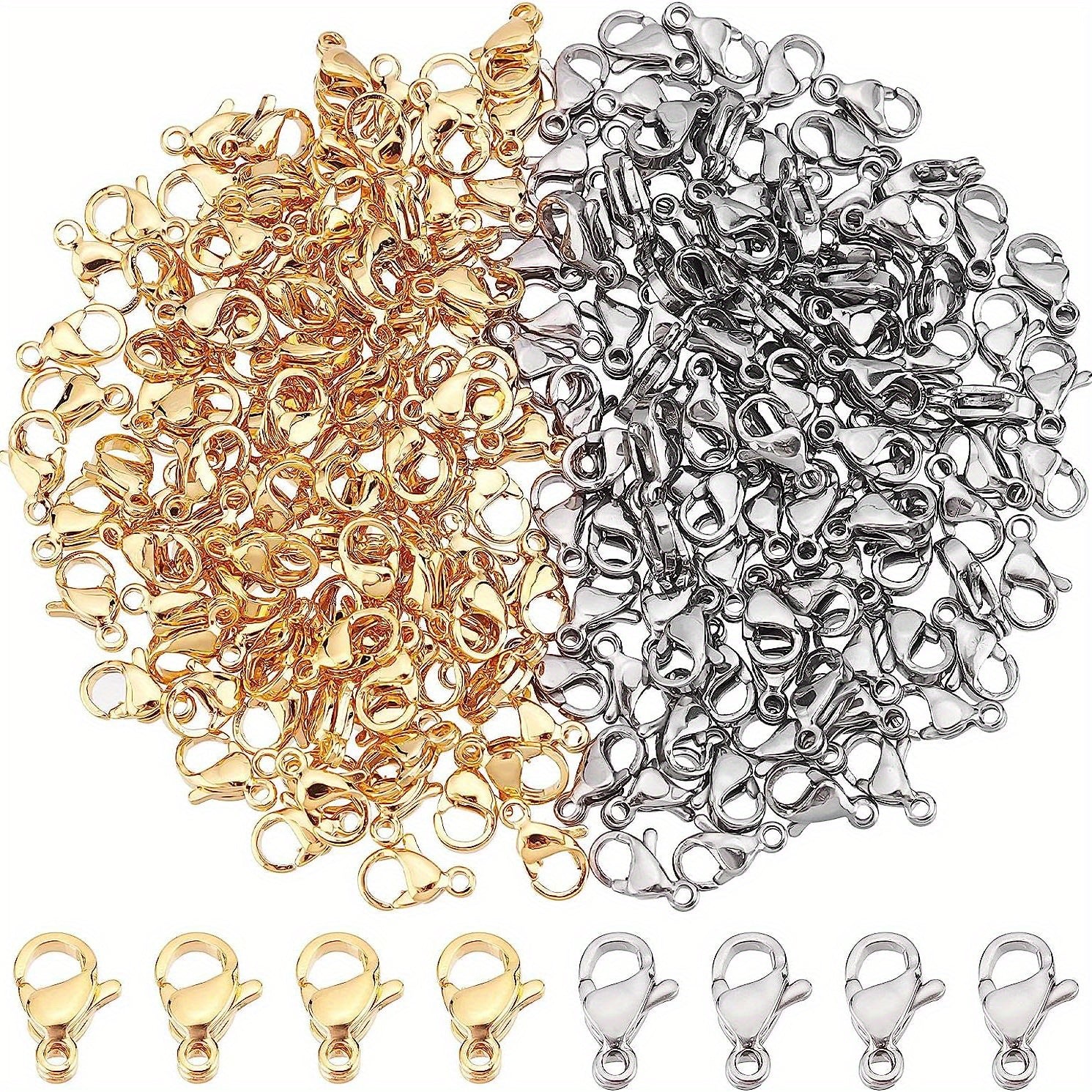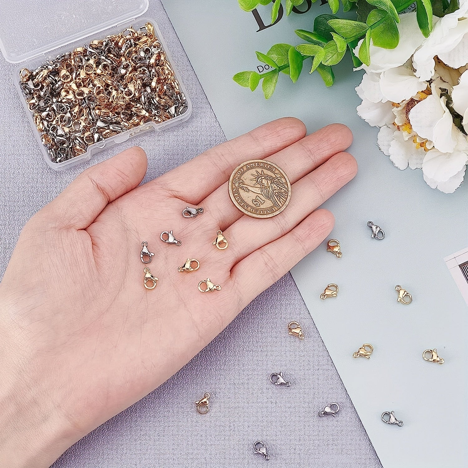 Get a set of 100 lobster clasps in golden and silvery tones for your DIY jewelry making projects. These alloy lobster clasps are perfect for creating necklaces and bracelets.