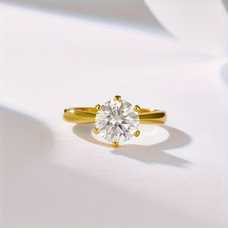 This stunning ring features a 10 carat moissanite stone set in 925 sterling silver with 18k gold plated accents. Perfect for both men and women.