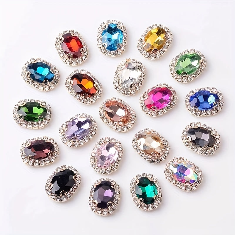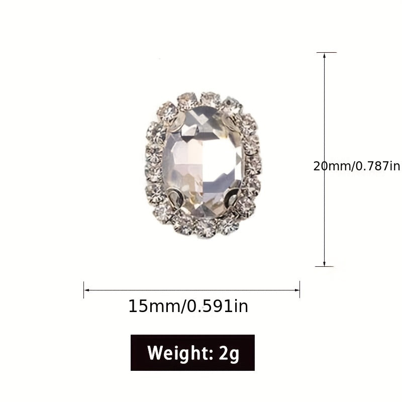 Enhance your sewing projects with this 10-piece pack of 15-20mm oval-shaped rhinestone decorations. Perfect for adding a touch of sparkle to your jewelry creations.