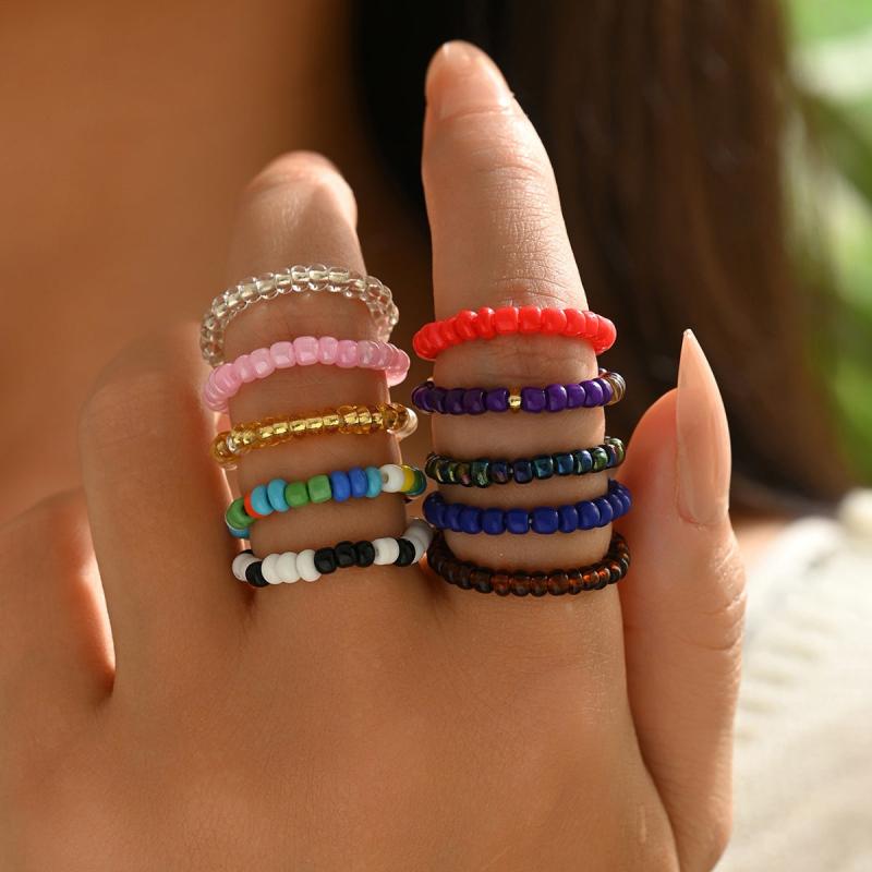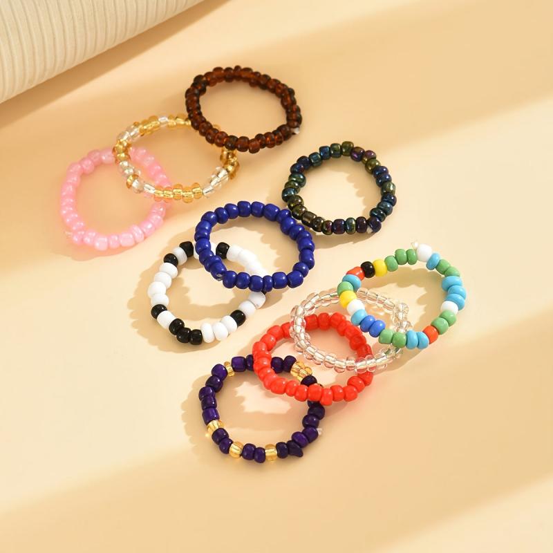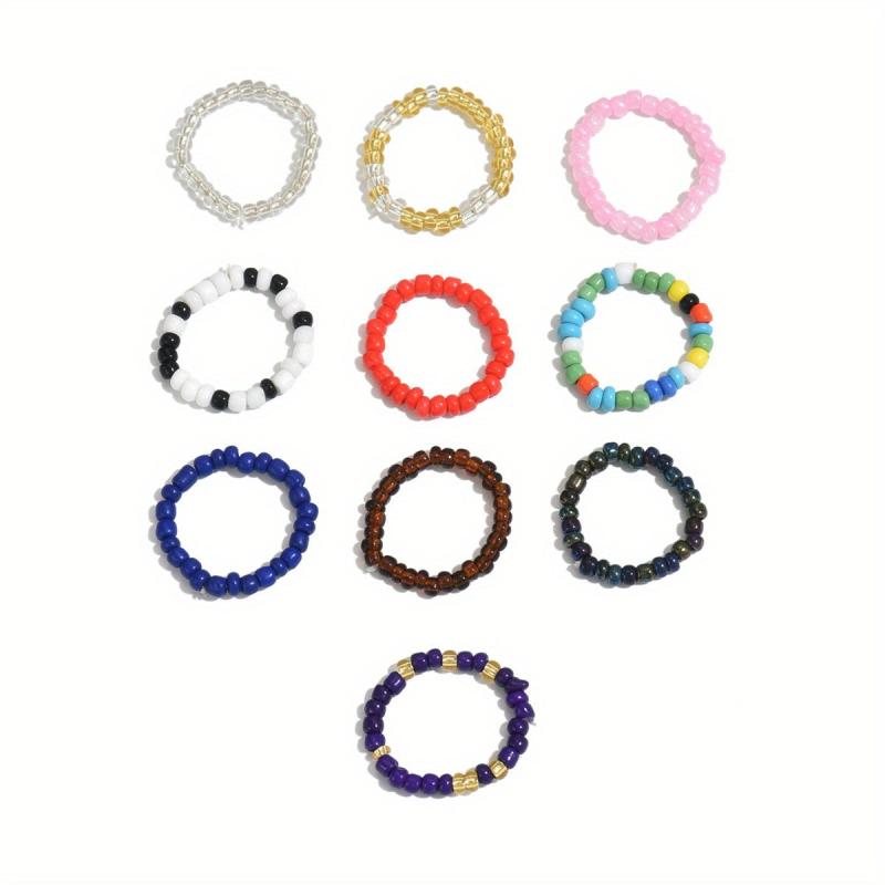 10pcs Boho Style Colorful Beaded Stretch Rings Set