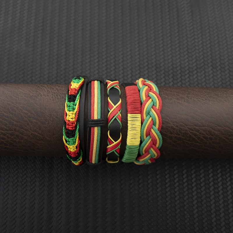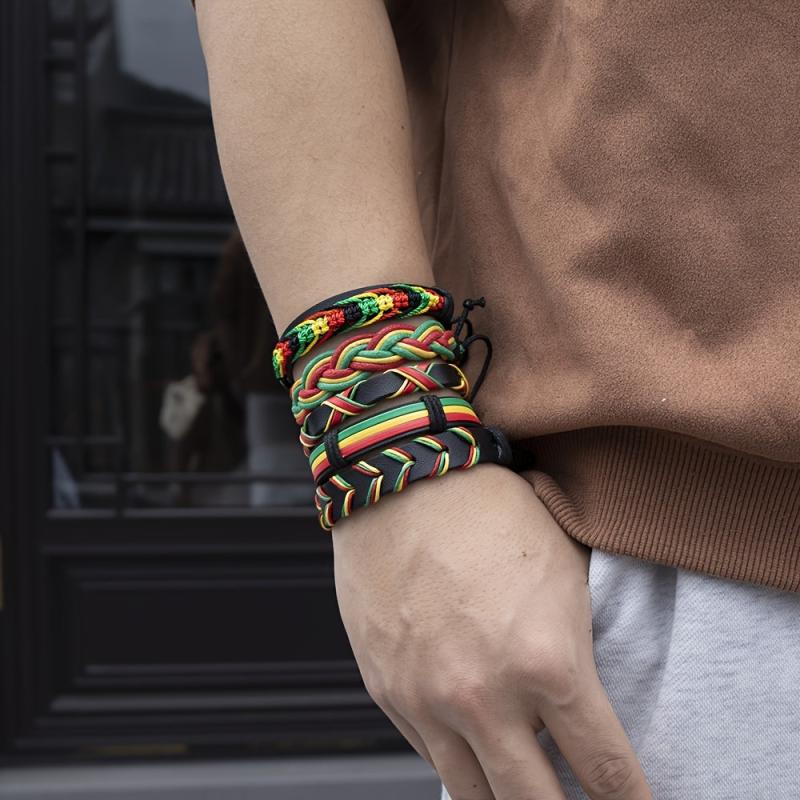 Add a pop of color to your outfit with this set of 10 braided faux leather bracelets. Each bracelet features stylish patterns in red, yellow, and green, making them a perfect accessory for everyday wear.
