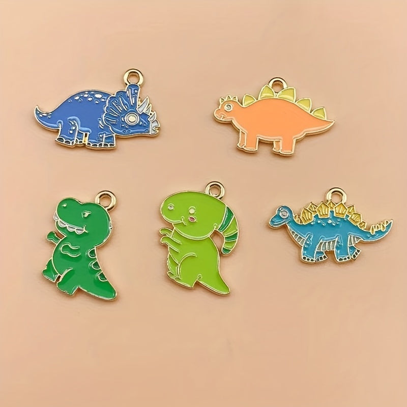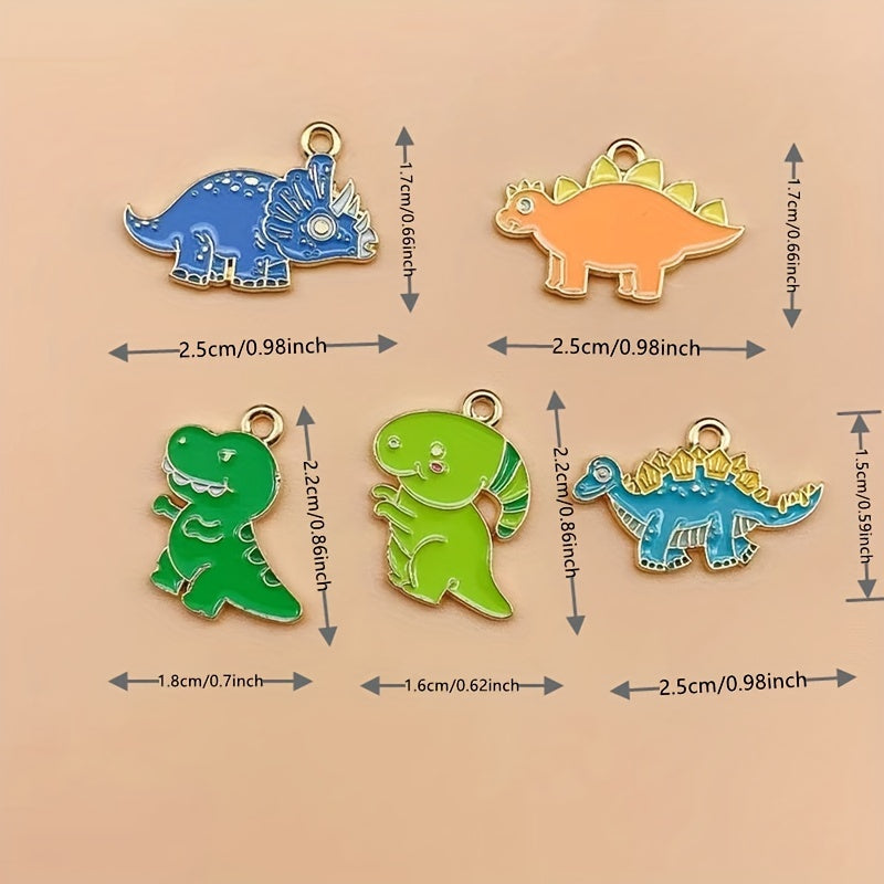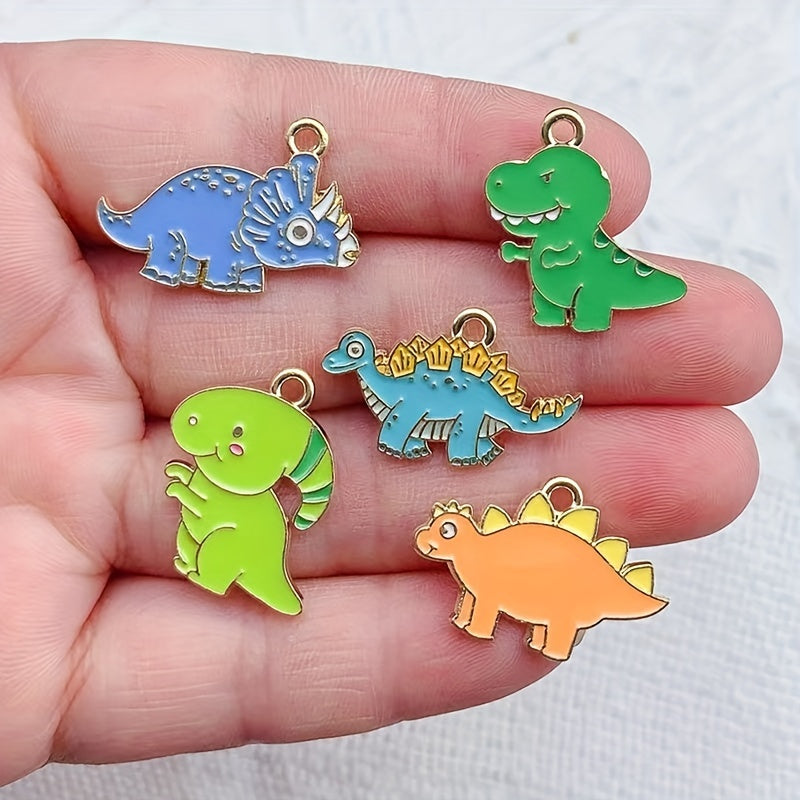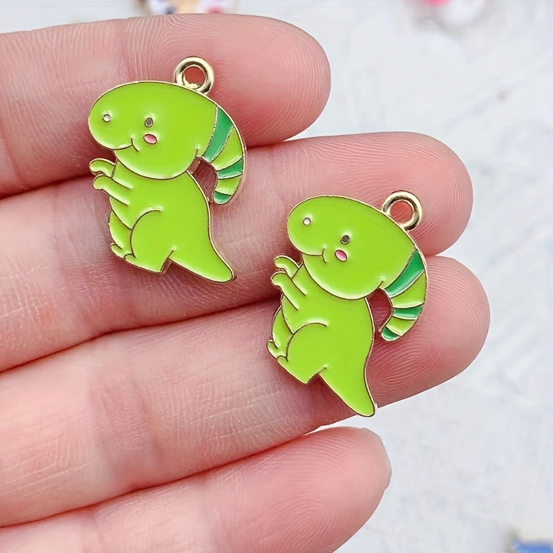 These enamel pendants feature a cute cartoon dinosaur design, perfect for creating earrings, bracelets, necklaces, and more.