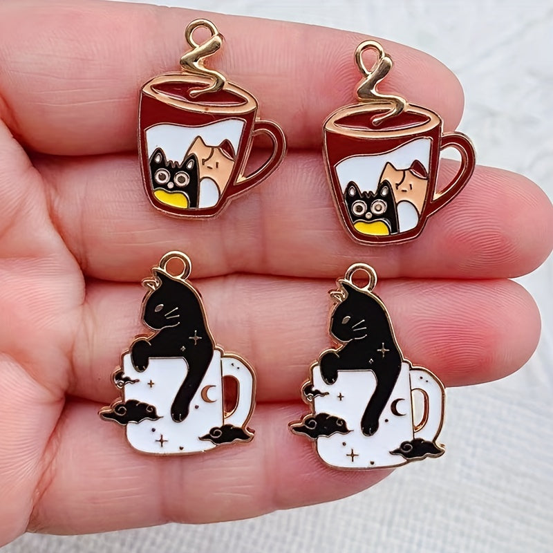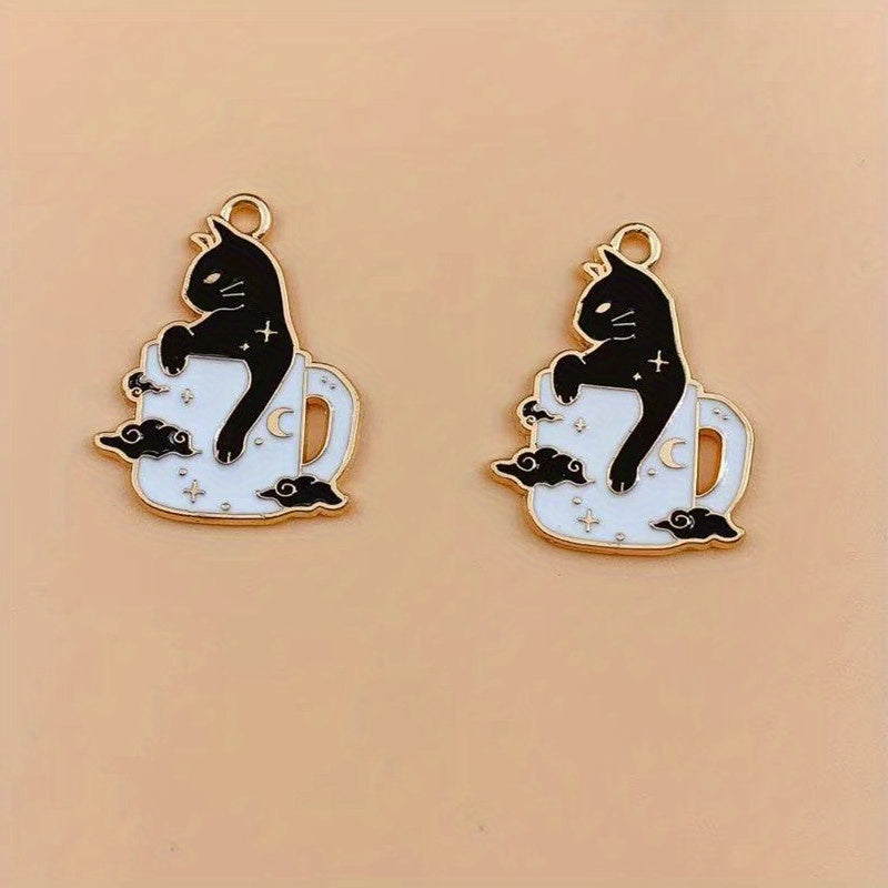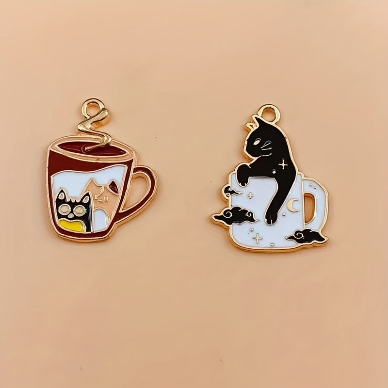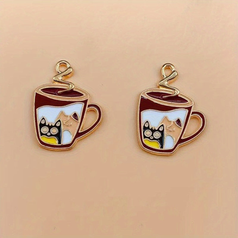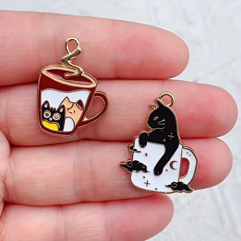 10pcs Cat DIY Pendant Enamel Alloy Charm Cup Cat Pendant For DIY Keychain