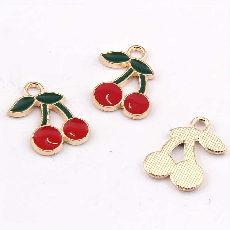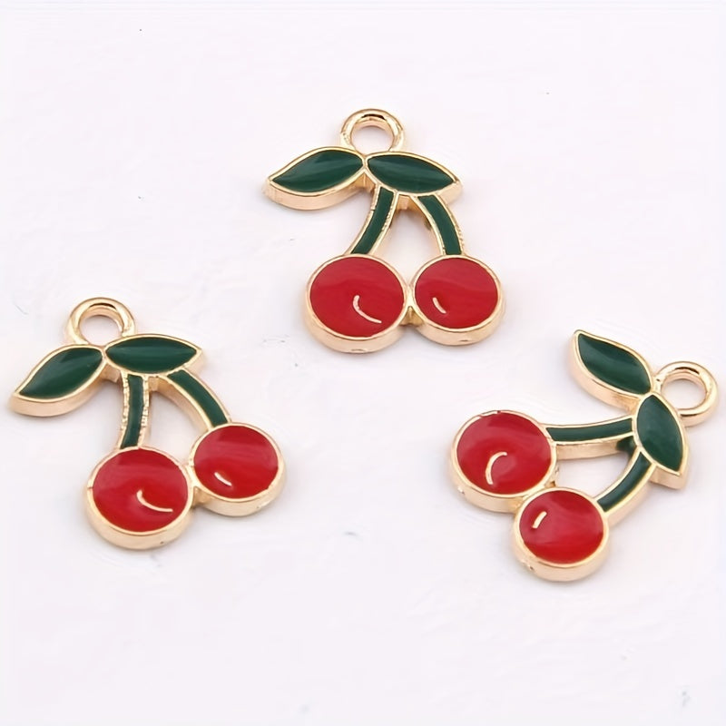 Add a touch of nature-inspired charm to your DIY projects with these enamel cherry pattern drop oil alloy pendants. Perfect for earrings, bracelets, necklaces, and more.