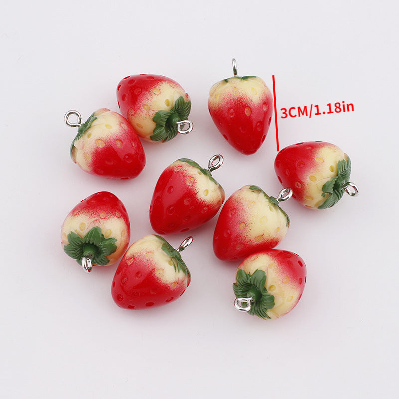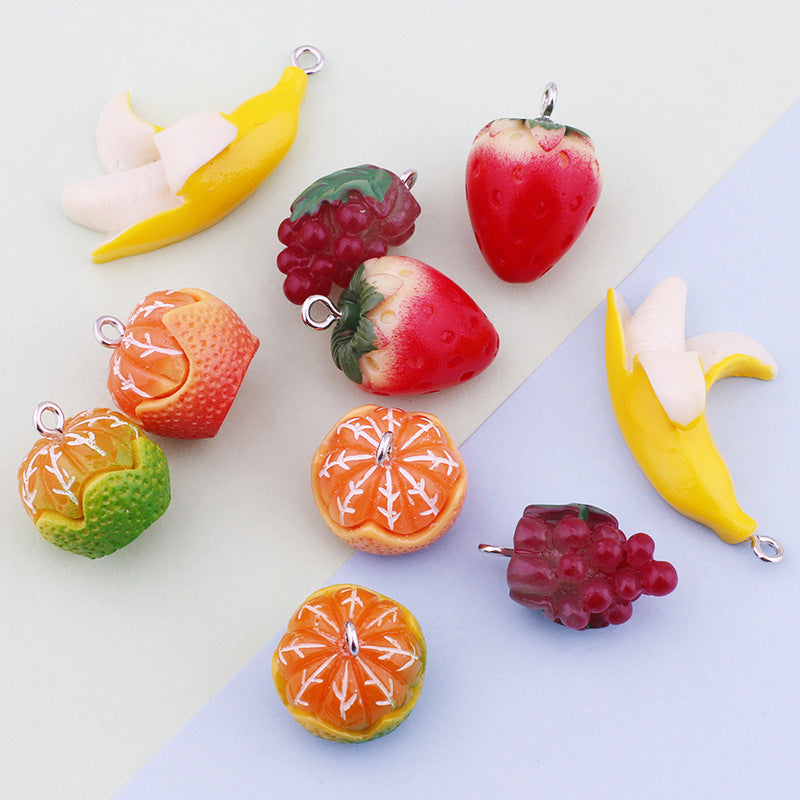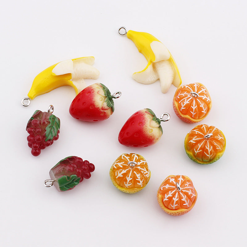 This set includes 10pcs of cute strawberry, orange, and banana fruit resin pendants for creating your own earrings, necklaces, and other jewelry items.