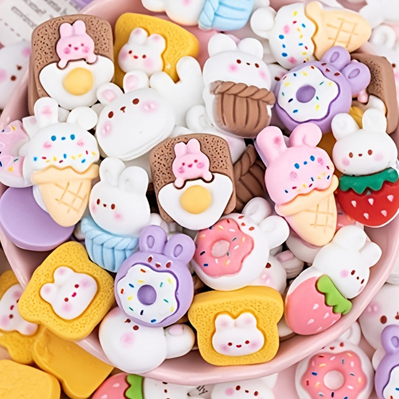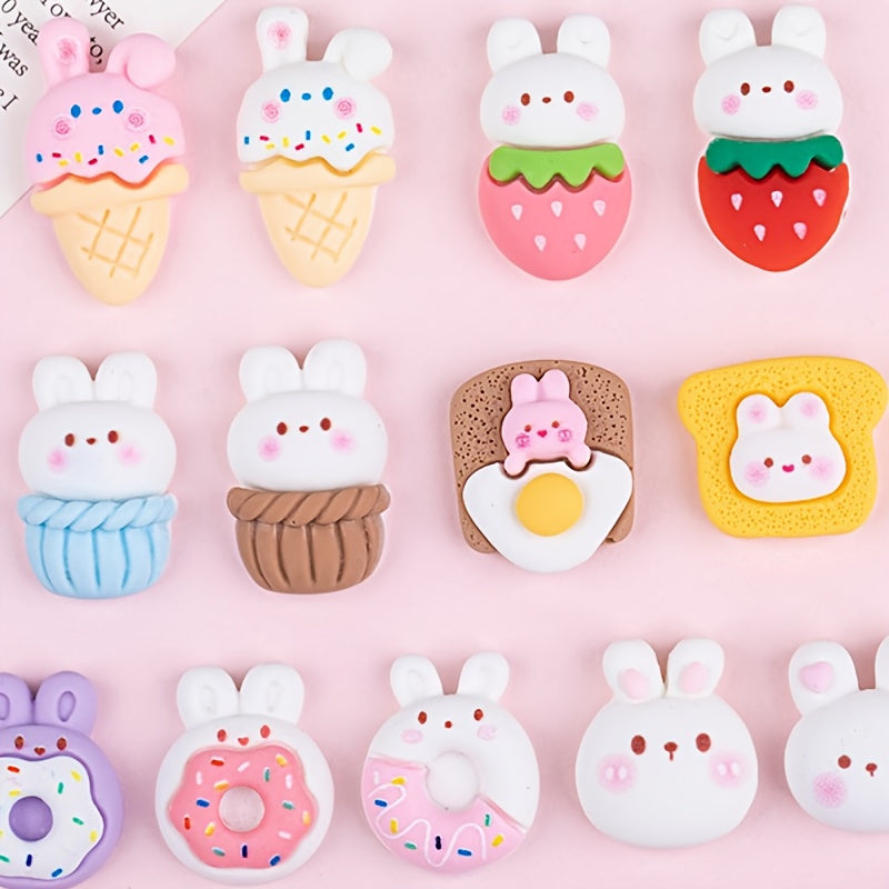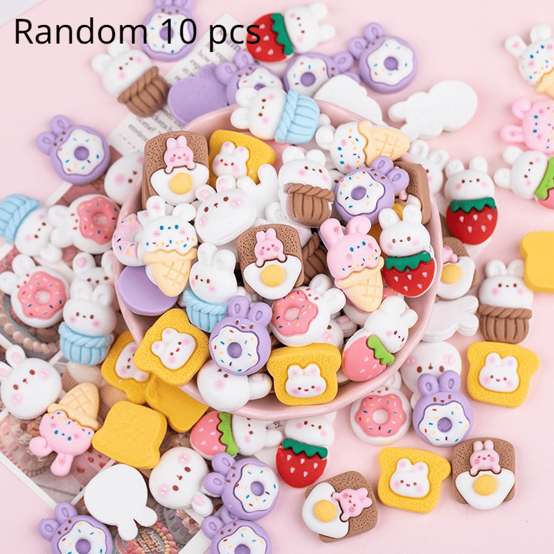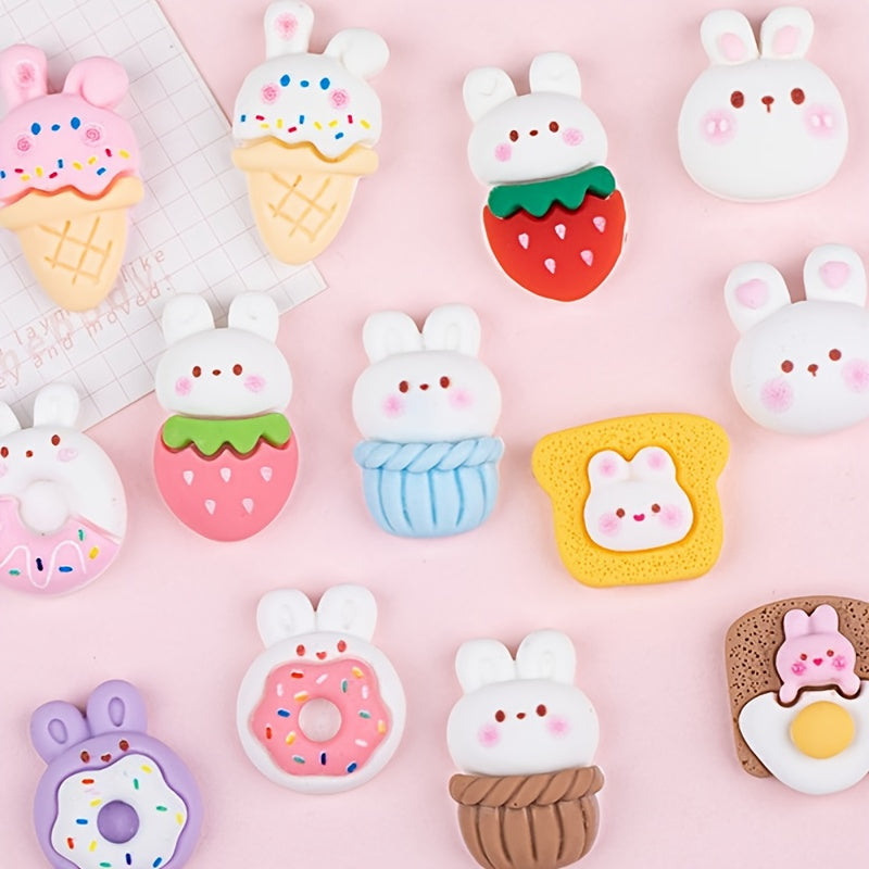 10pcs Mixed Cartoon Rabbit Resin Flatback Charm for DIY Crafts