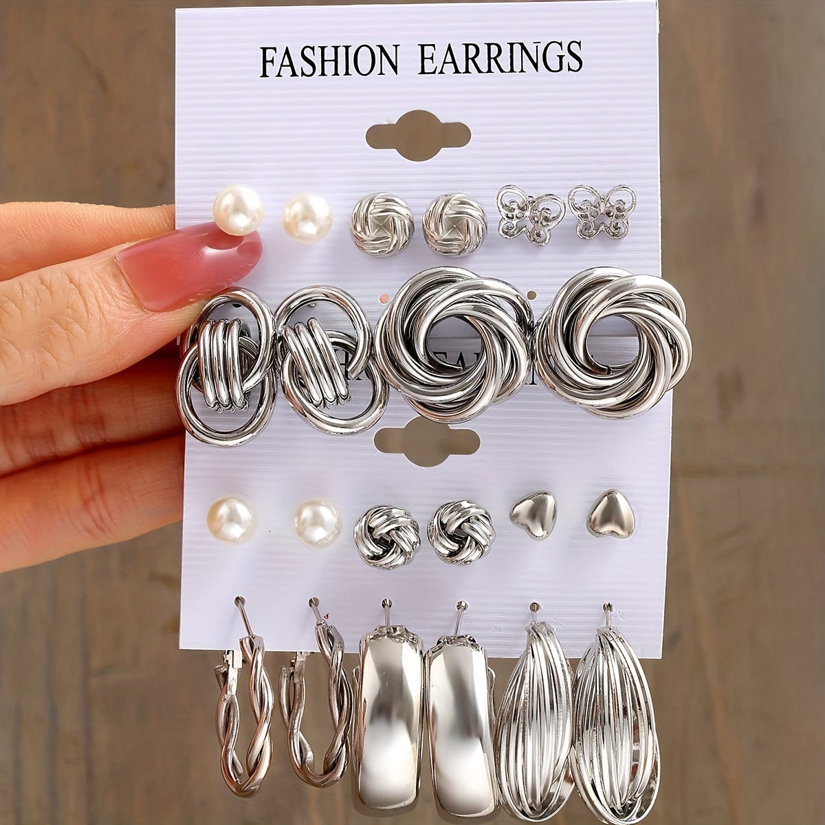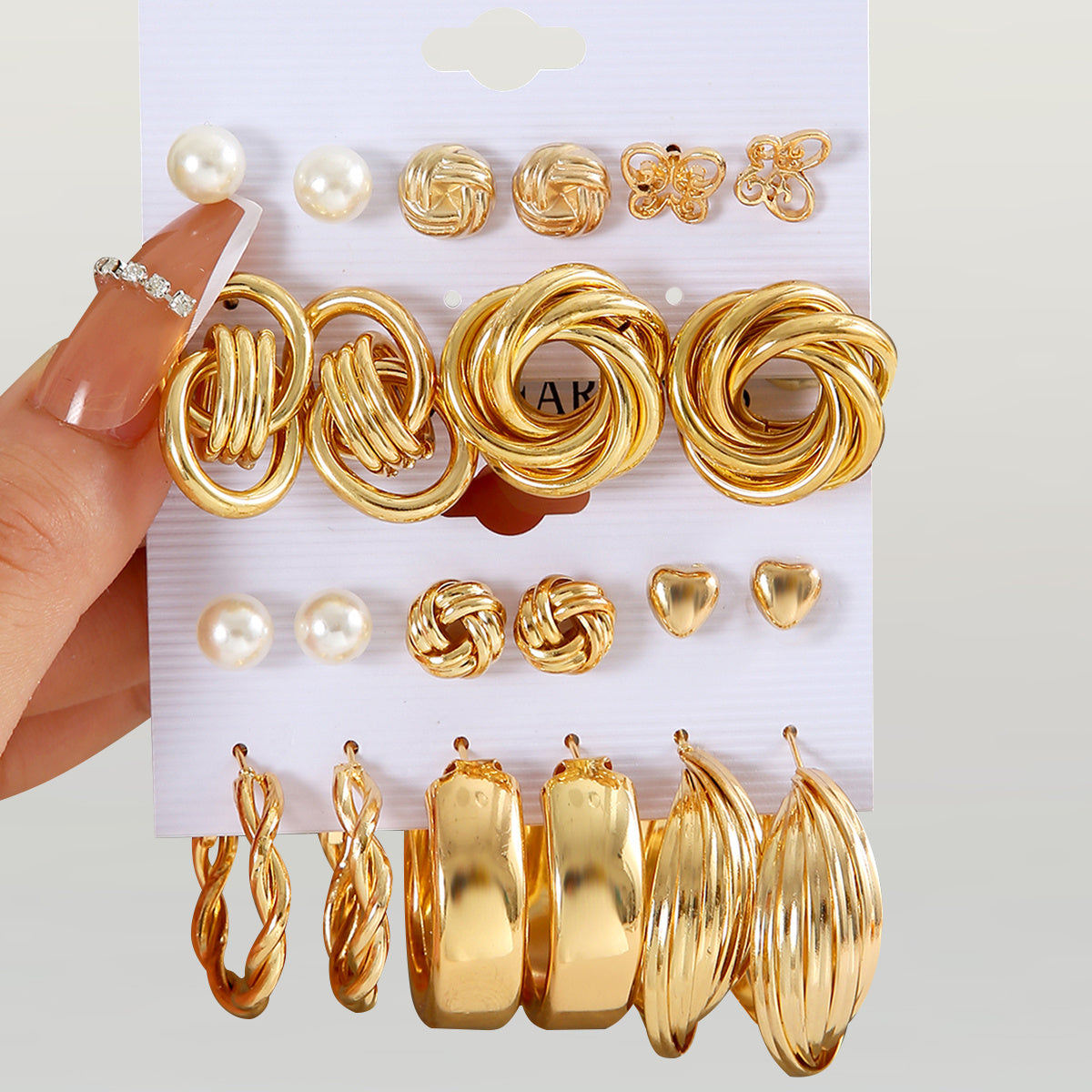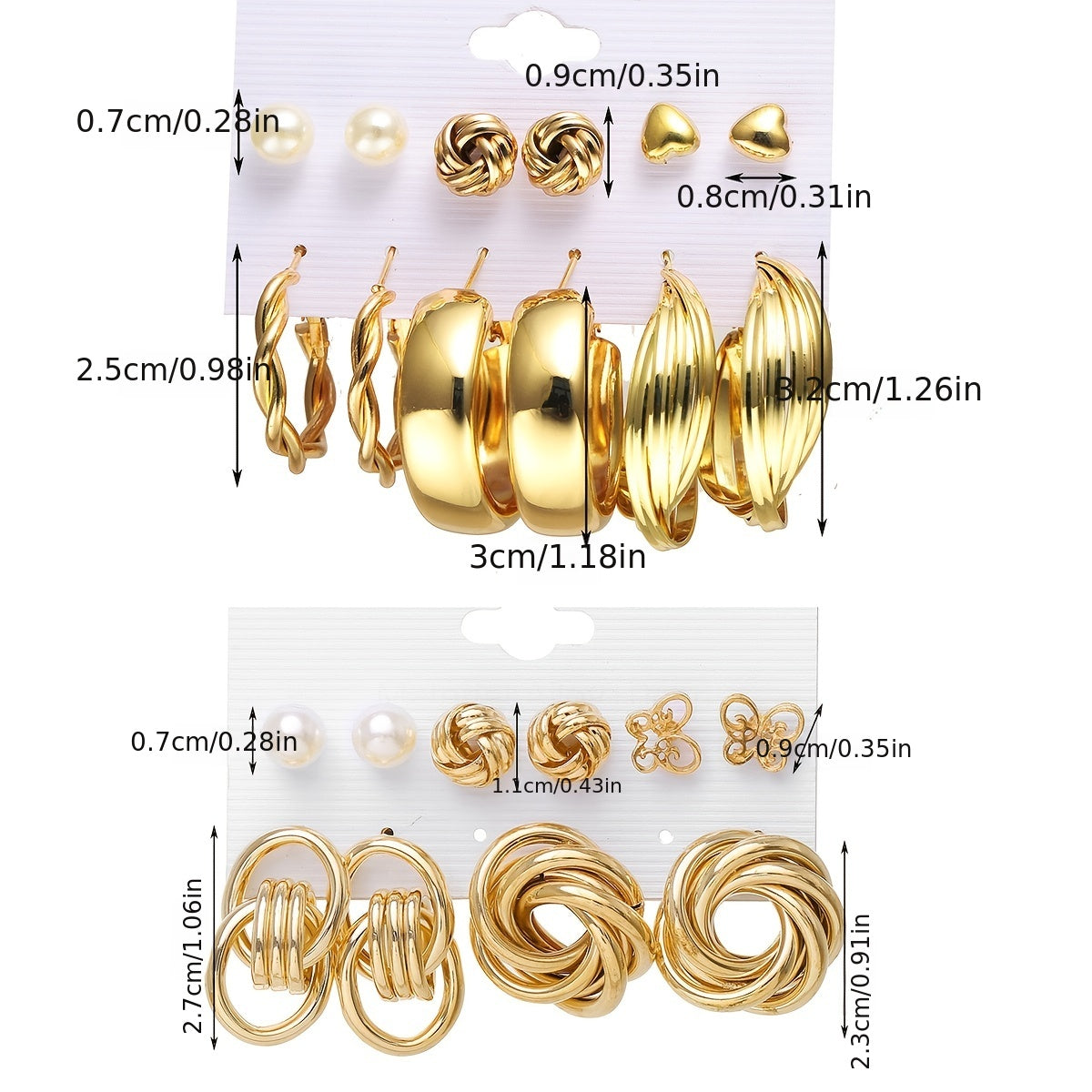 This earring kit includes 11 pairs of golden earrings in various shapes, perfect for daily wear. Made of high-quality zinc alloy, these earrings are stylish and versatile.