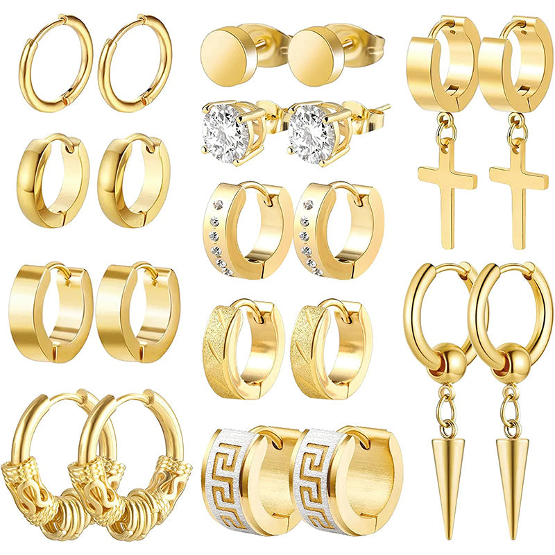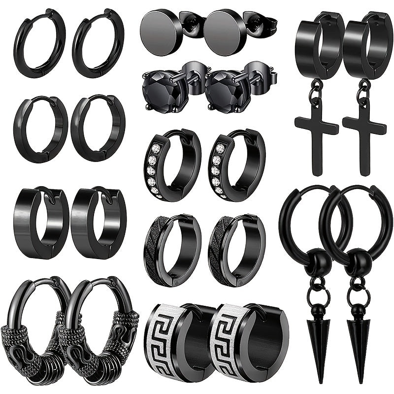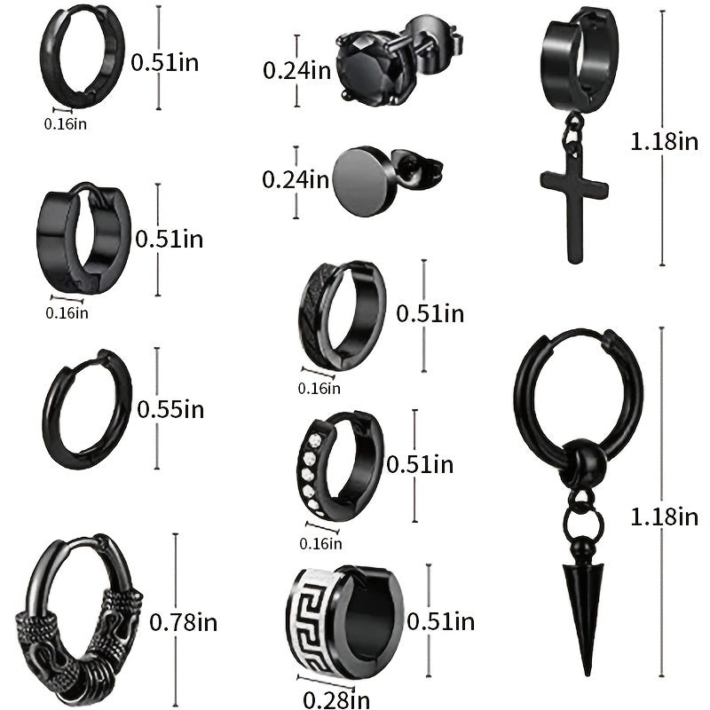 Elevate your party or birthday look with this set of 11 pairs of stainless steel hoop earrings featuring cross dangles. Perfect for adding a touch of style to any outfit.