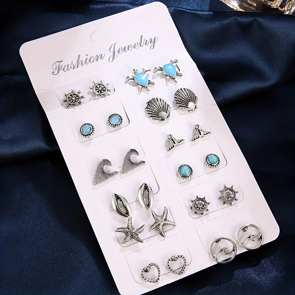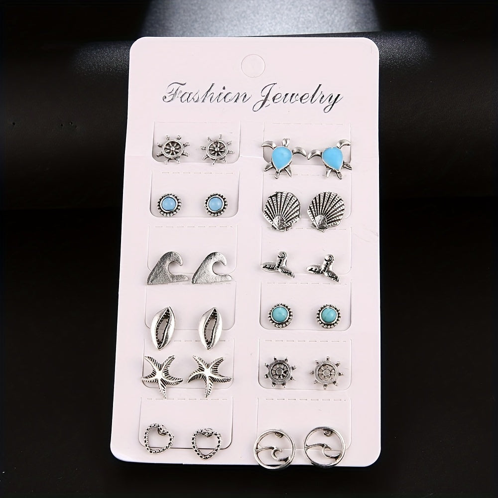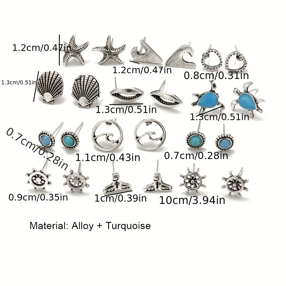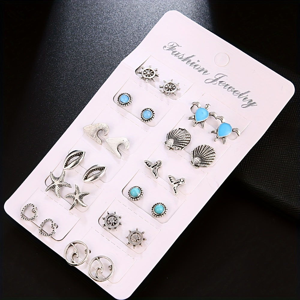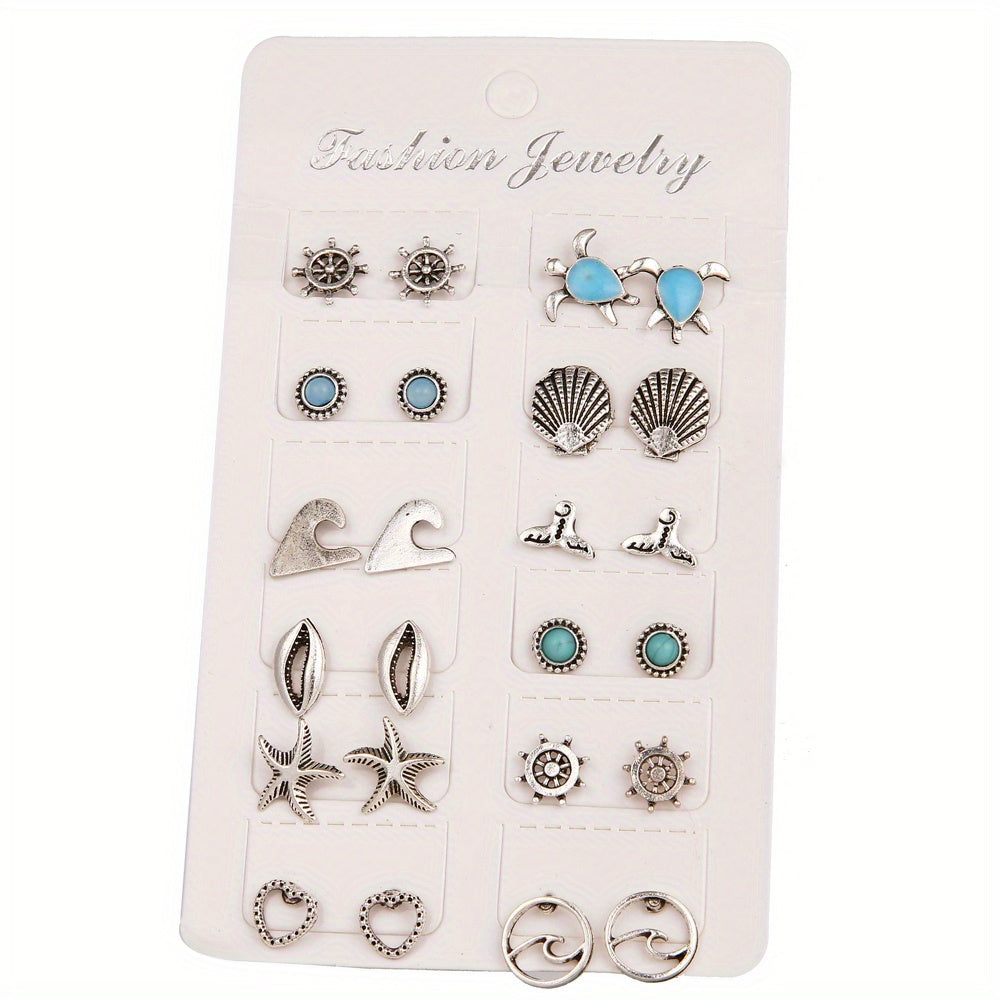 This set of stud earrings features turtle, starfish, and shell designs, perfect for ocean lovers. Made of high-quality alloy, these earrings are a great gift idea for females who appreciate retro ocean style.