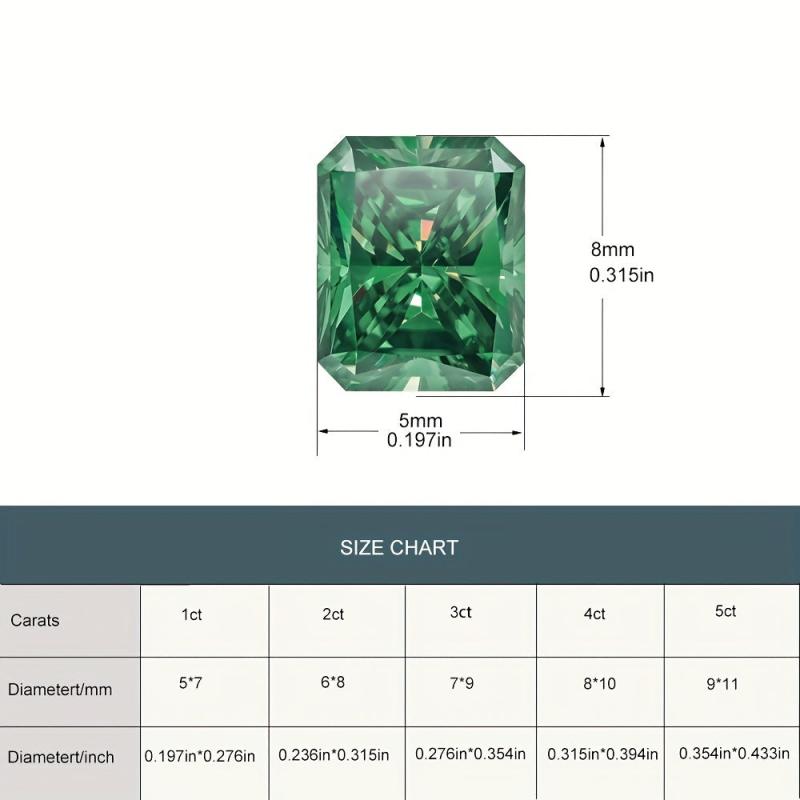 This 1.5CT Green Moissanite is perfect for creating stunning jewelry pieces like engagement rings, wedding bands, earrings, bracelets, pendants, and necklaces.