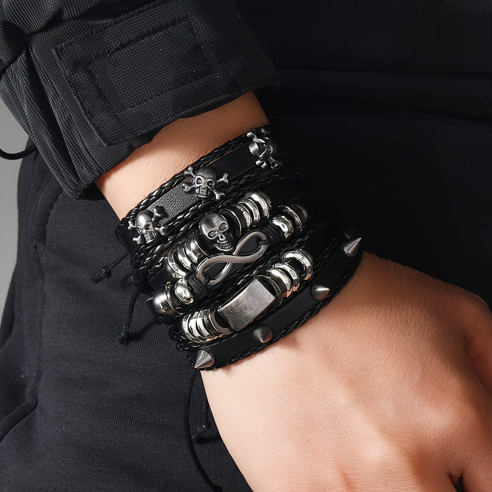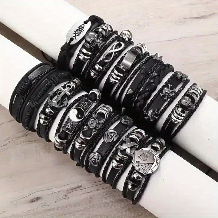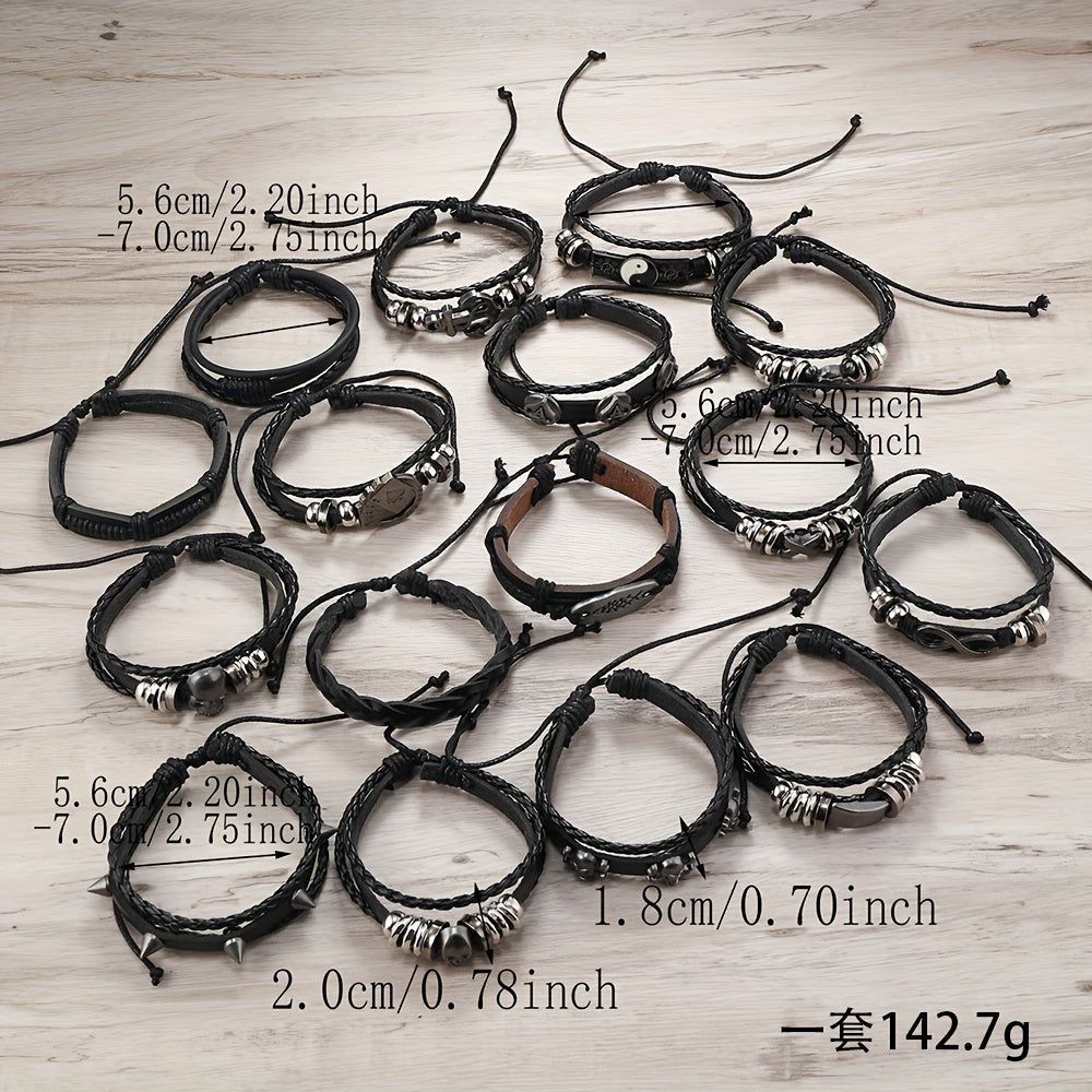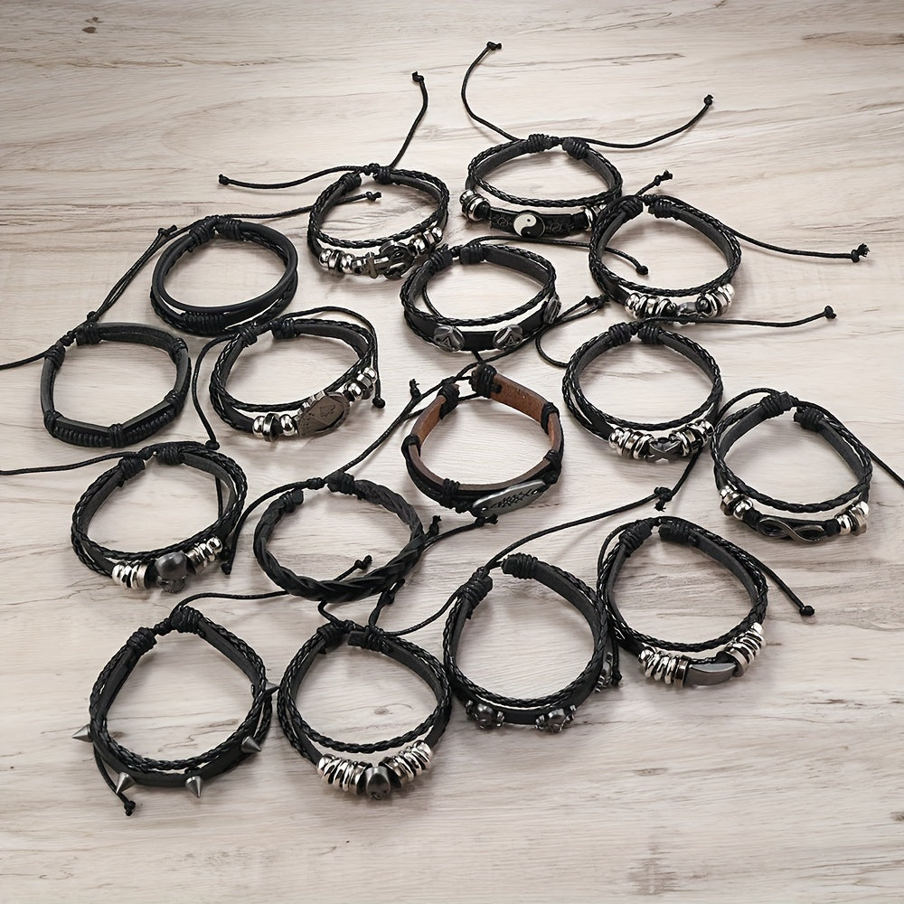 Elevate your daily wear with this vintage-inspired bracelet set featuring 16 adjustable faux leather bracelets. Perfect for adding a touch of style to your outfit.