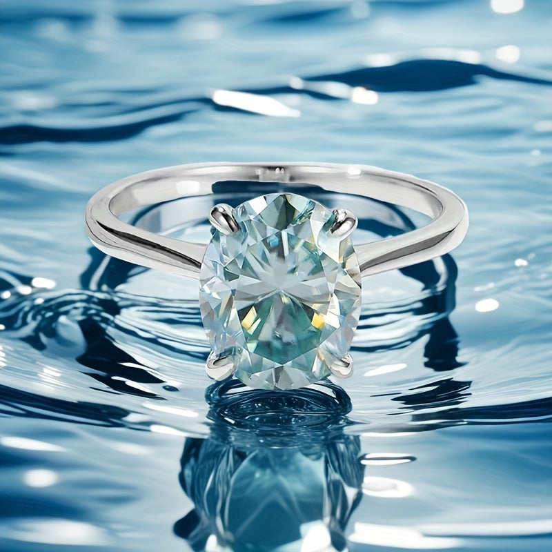 This stunning oval cut Moissanite solitaire ring is a symbol of eternal love and commitment. Crafted with high-quality synthetic gemstones, this ring is perfect for weddings, promises, and anniversaries.