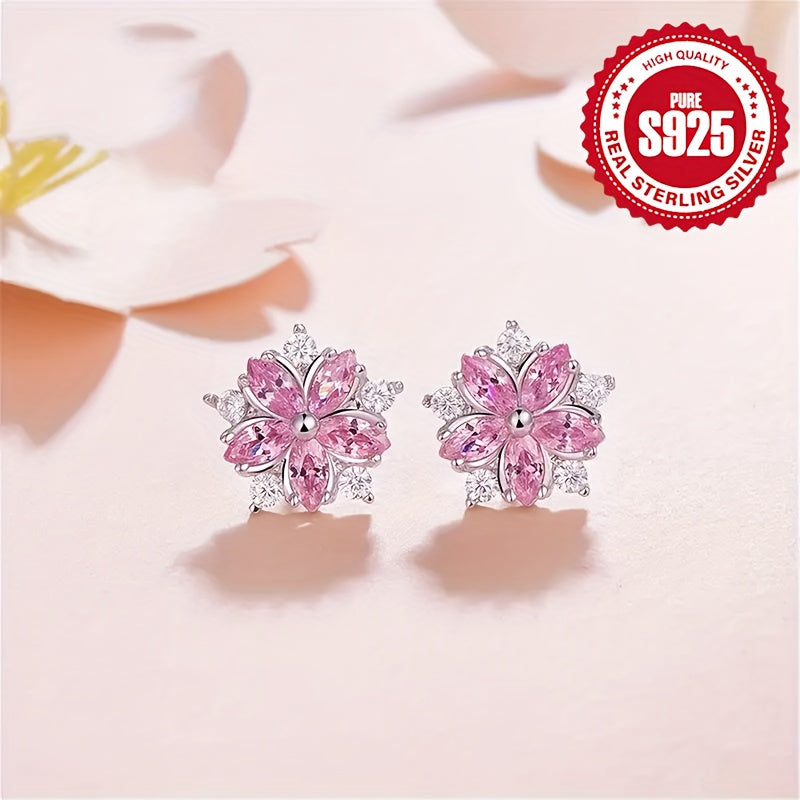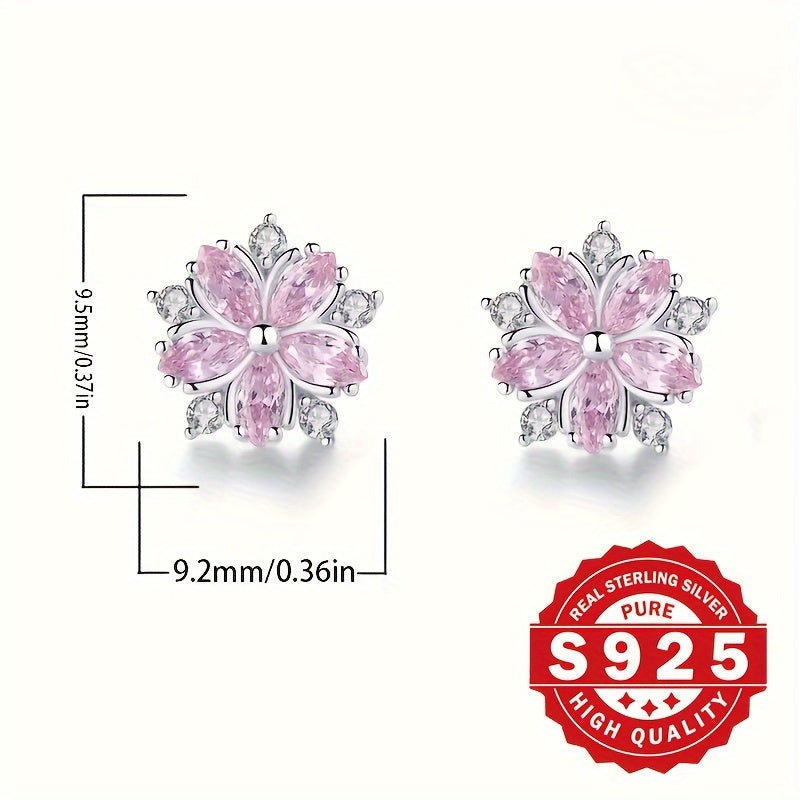 18K Gold Plated S925 Silver Pink Cherry Blossom Stud Earrings with Zirconia