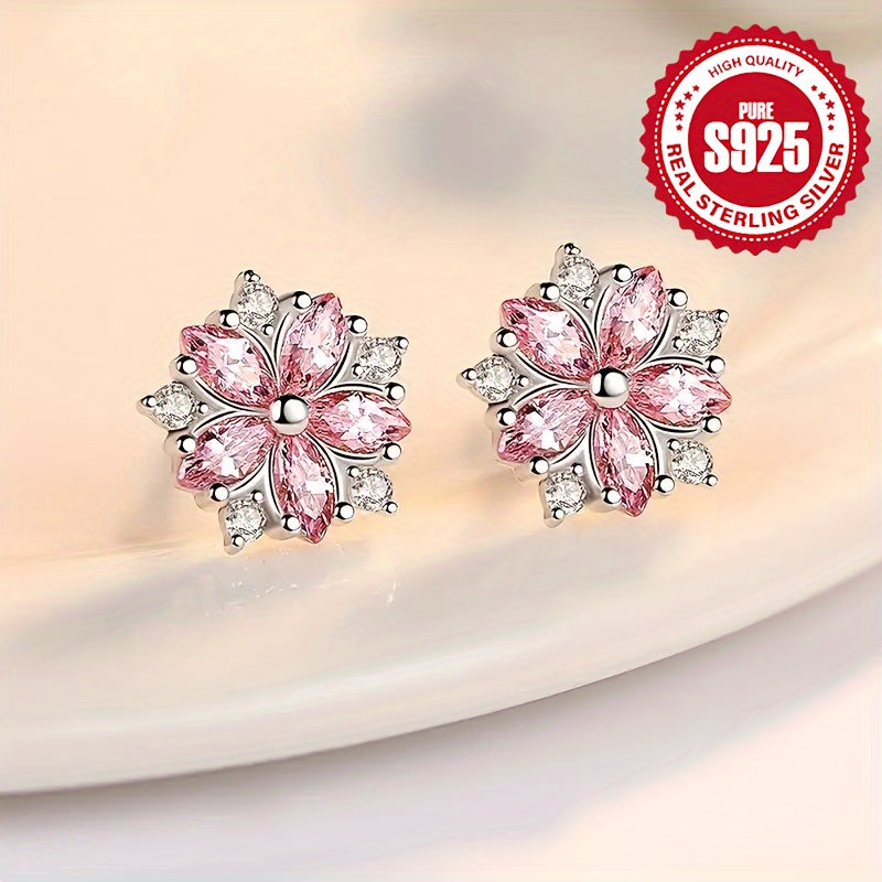 18K Gold plattiert S925 Silberrosa Cherry Blossom Ohrringe mit Zirkonia