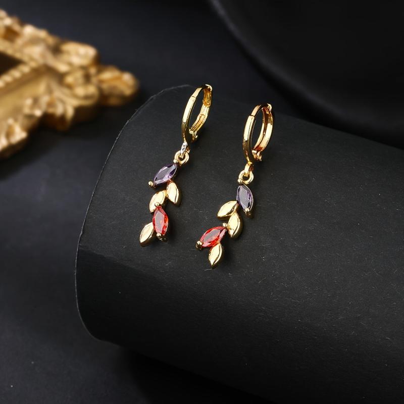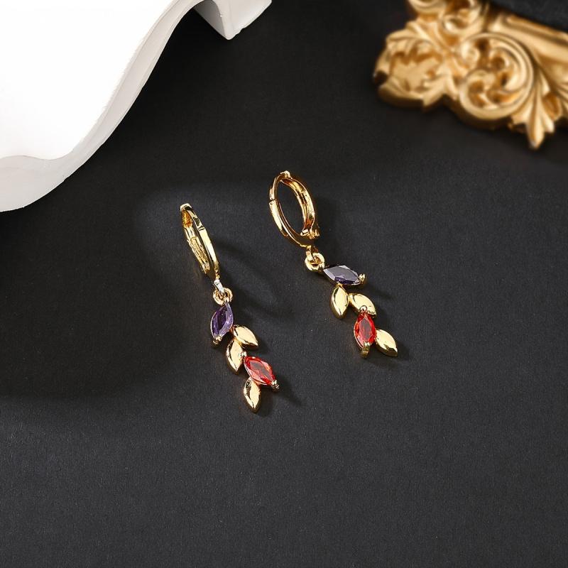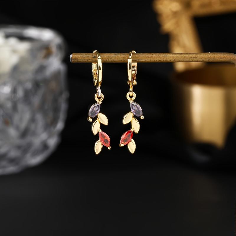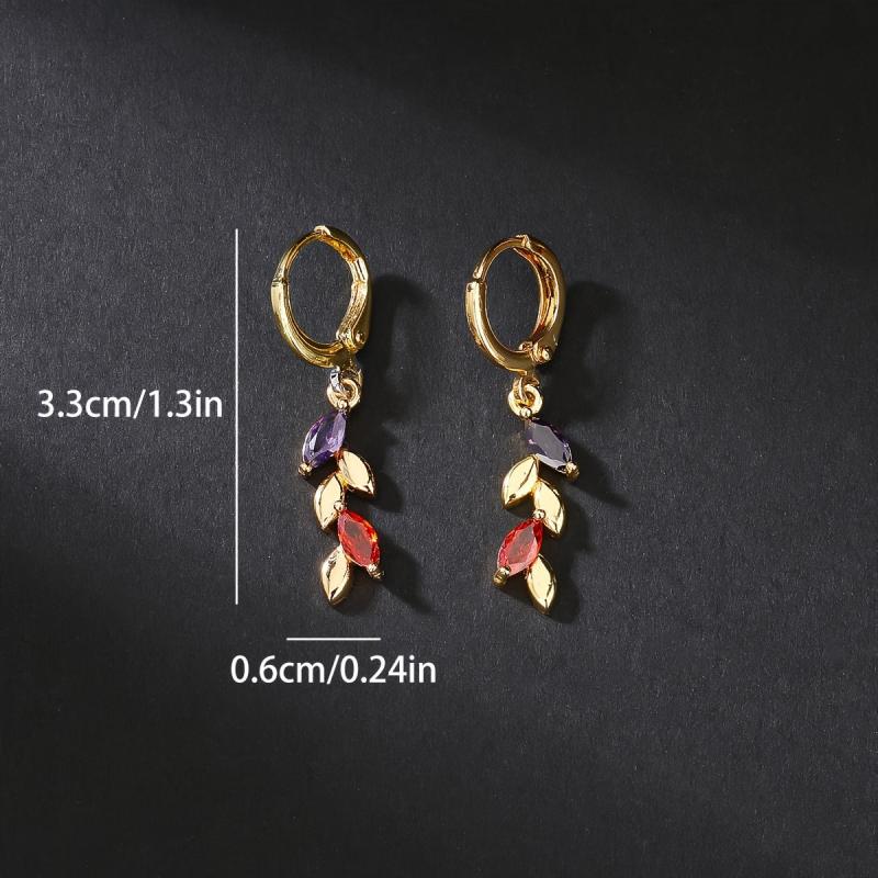 Elevate your style with these trendy earrings featuring a unique design of wheat and leaf with colorful cubic zirconia. Perfect for parties or casual wear.