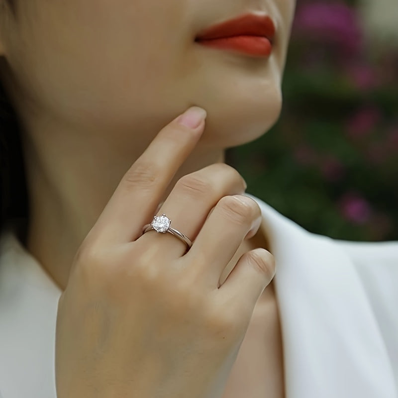 Stunning 1ct Moissanite engagement ring crafted in s925 sterling silver. This ring features a round cut Moissanite stone in a men's pro design. Perfect for a wedding band or engagement ring.