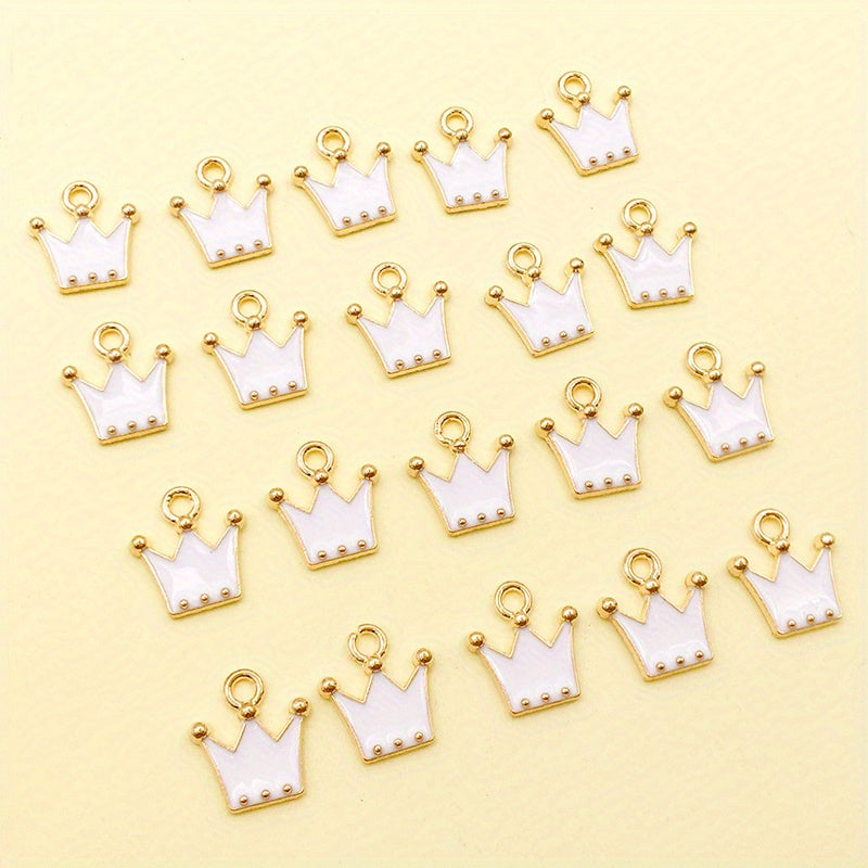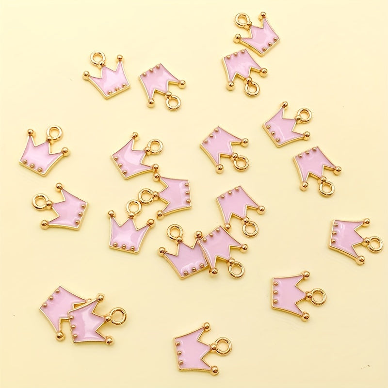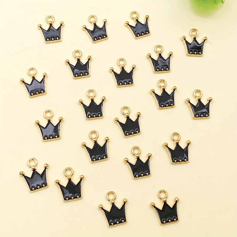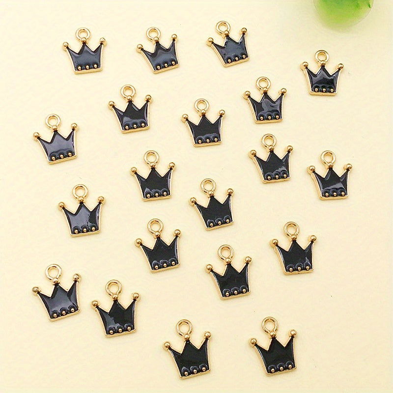 These zinc alloy enamel golden plated crown charms are perfect for crafting DIY necklaces, bracelets, and earrings. Add royal elegance to your jewelry creations with these charming pendants.