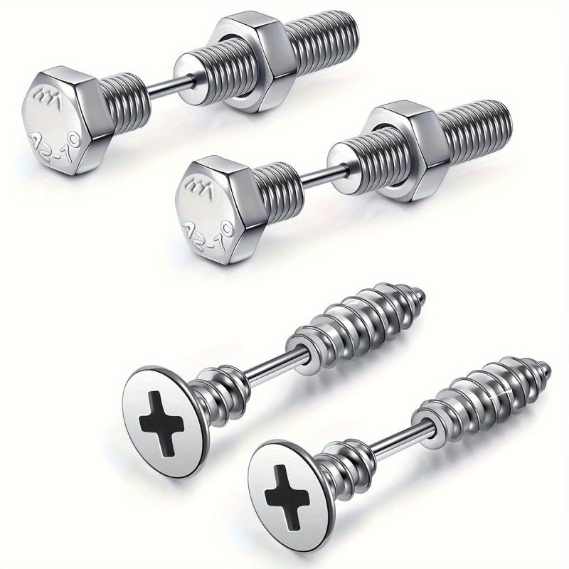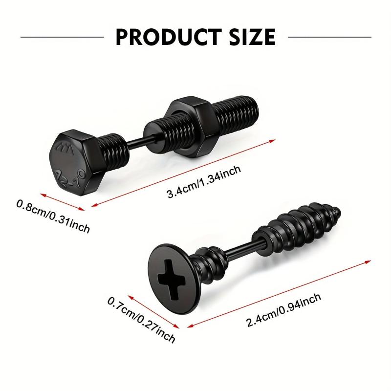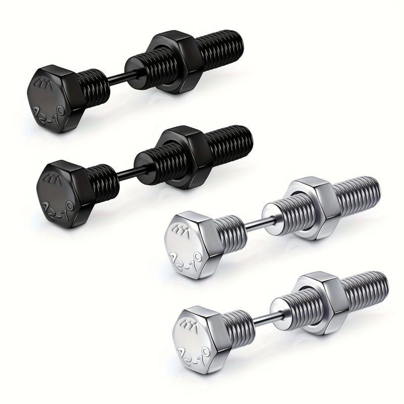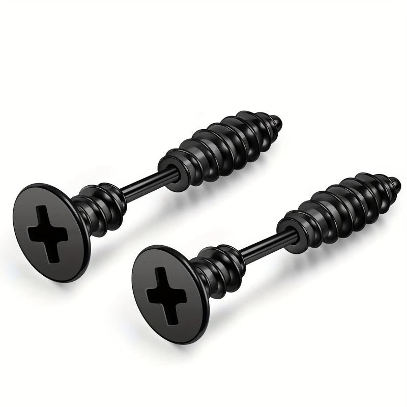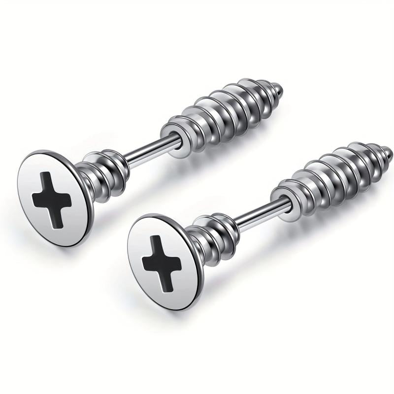 Enhance your edgy style with these rust-resistant stainless steel stud earrings featuring a secure closure. Perfect accessory for men.