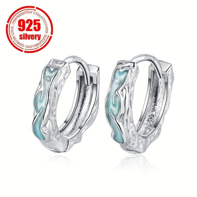 These stunning 925 sterling silver hoop earrings feature an ocean-inspired resin inlay design. They are perfect for daily wear, sports, and parties.