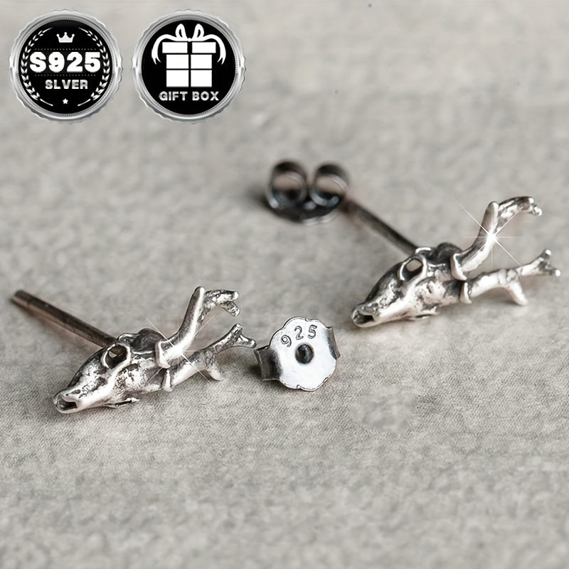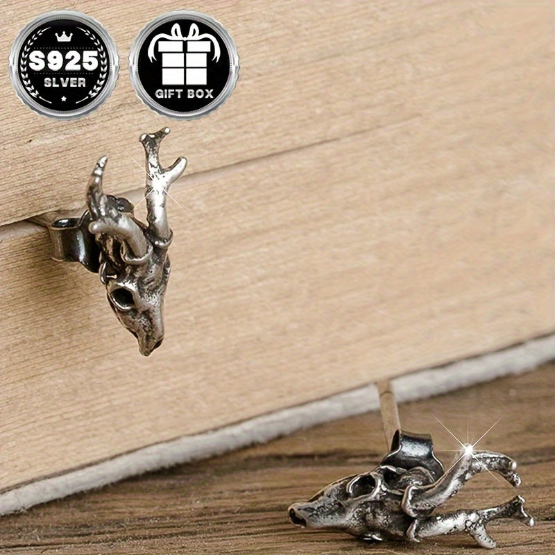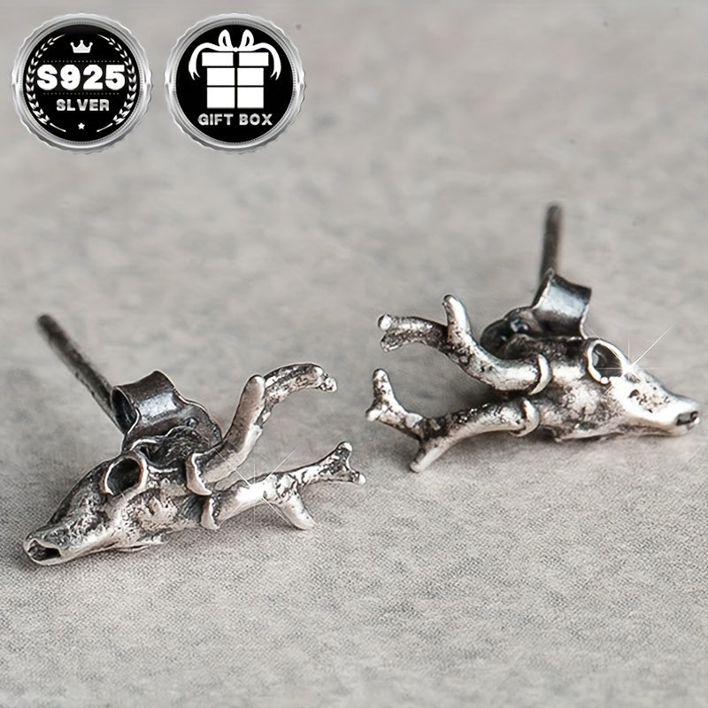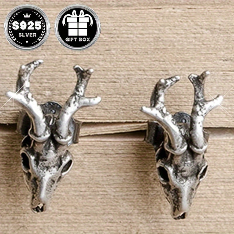 Add a touch of gothic style to your Halloween outfit with these 925 pure silvery deer skull earrings. Perfect for a holiday party or a punk-inspired look.